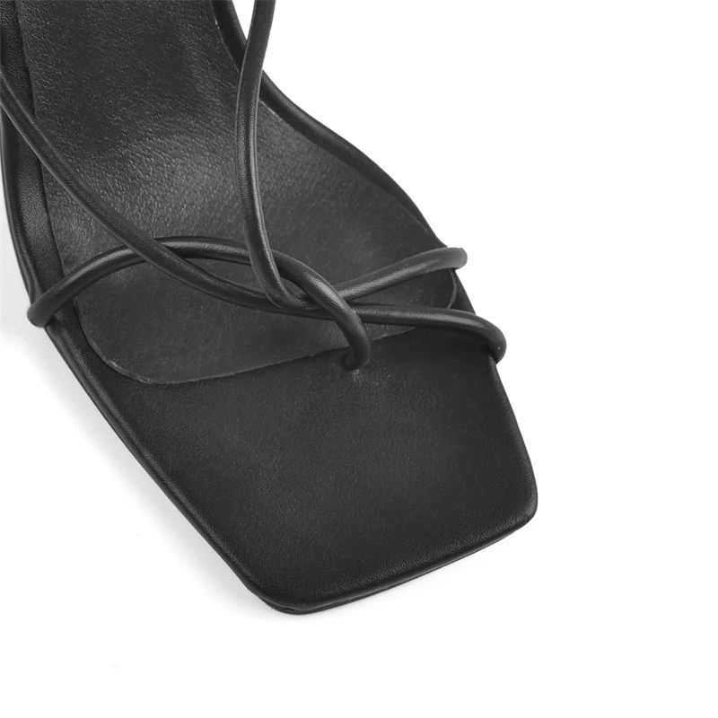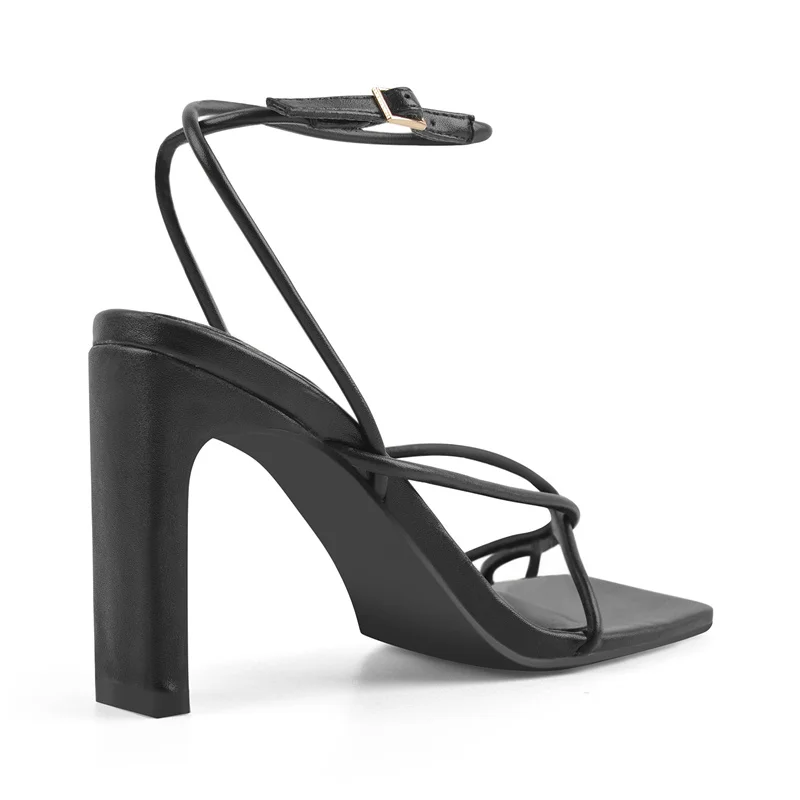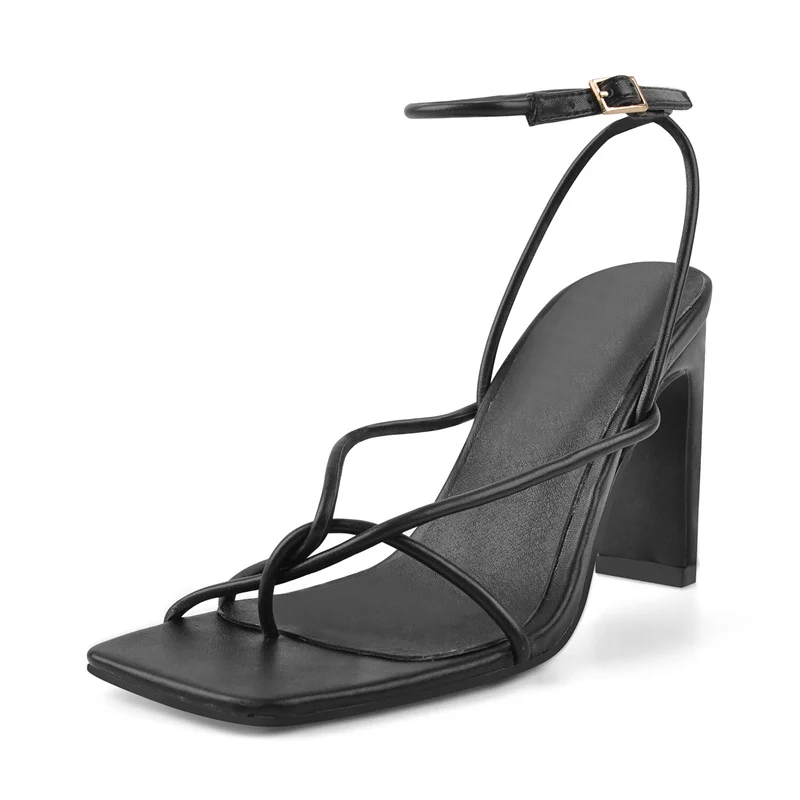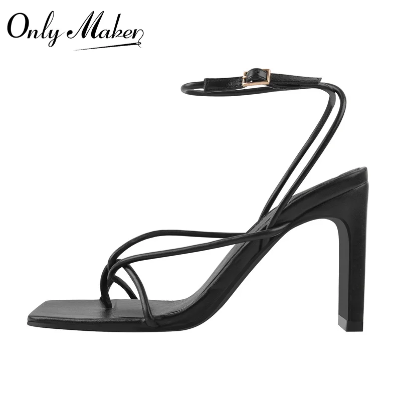 Женские шлепанцы Onlymaker, летние, с квадратным носком, с пряжкой, матовые, черные, с перекрестными ремешками, на массивном высоком каблуке, элегантные
