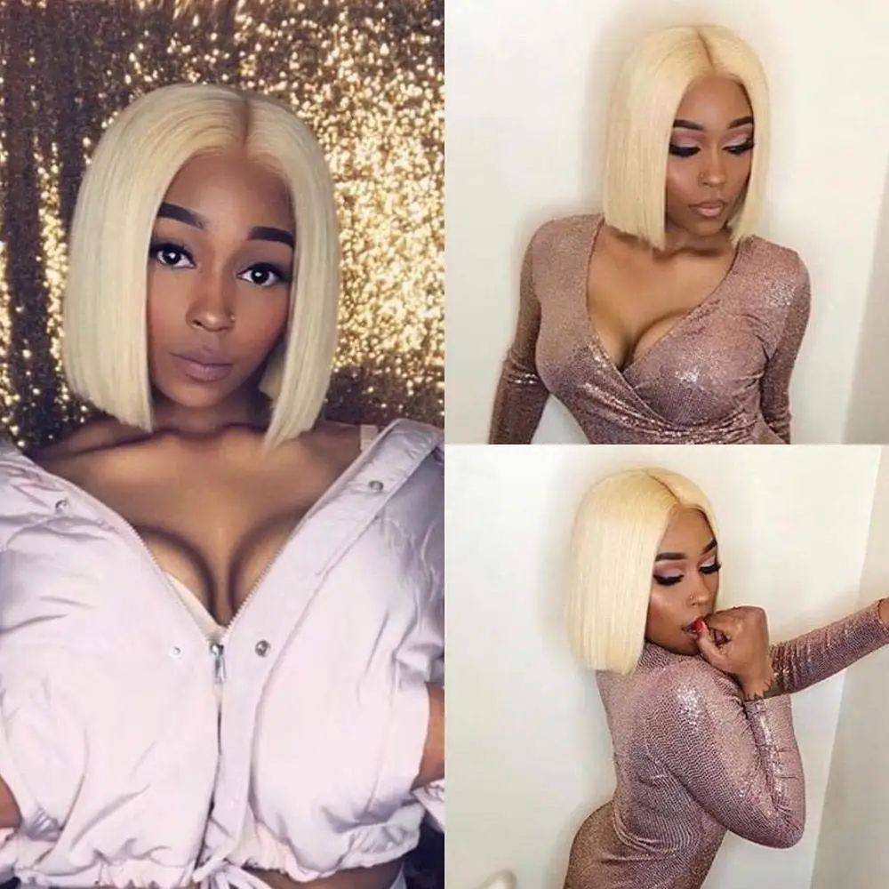 613 блонд боб парик человеческих волос дешевые полный машина сделал не кружева парикиФиолетовые парики без шнурка спереди