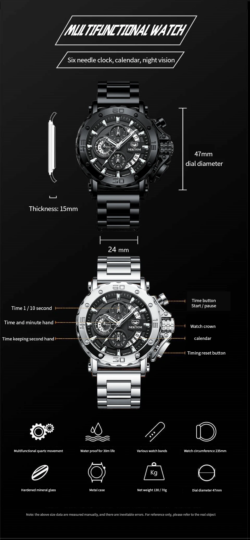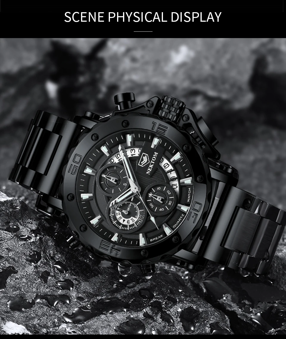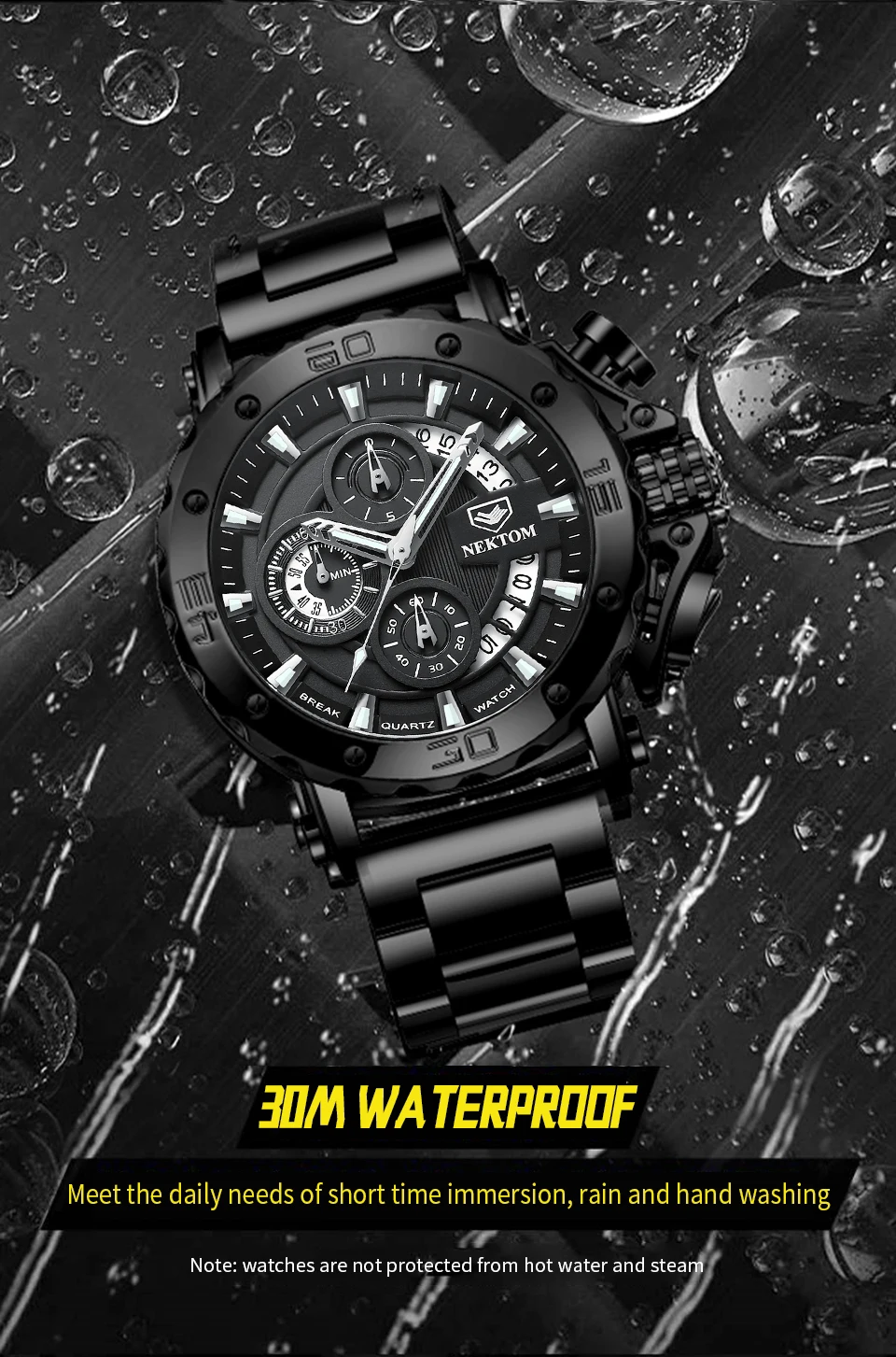 Повседневные военные спортивные водонепроницаемые мужские часы от лучшего бренда из нержавеющей стали Хронограф модные деловые мужские наручные часы NEKTOM 8229