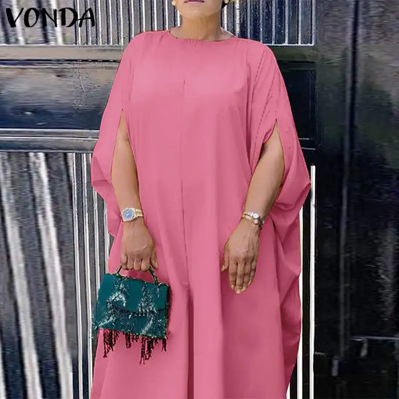 Летнее женское длинное платье VONDA 2021 с коротким рукавом, плиссированные повседневные платья с вырезом лодочкой, пляжный сарафан, богемное платье большого размера