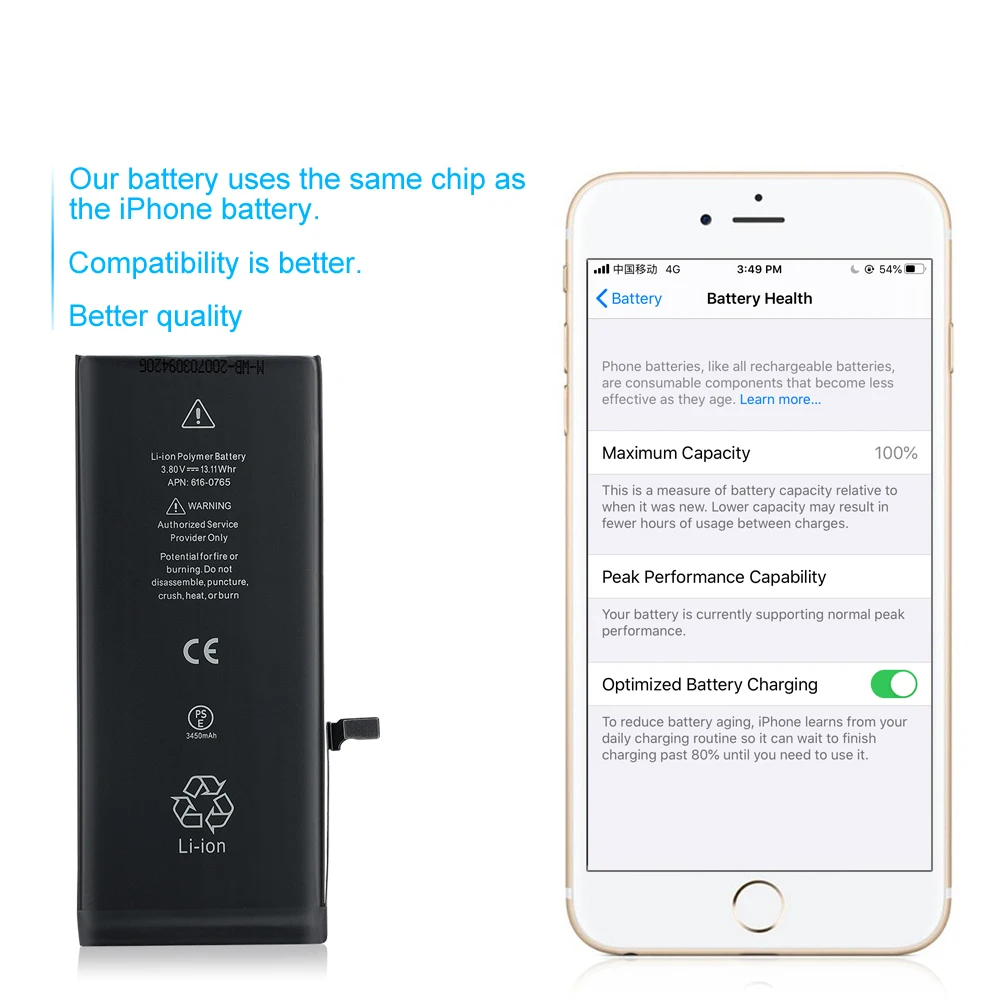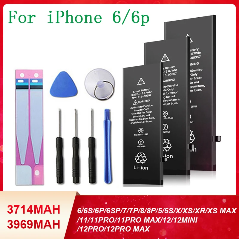 Аккумулятор для iPhone 6 6plus 6s 6sp 8 8p X XR XS Max 11 12pro MAx, сменная батарея большой емкости с инструментами для iPhone 7 7pus