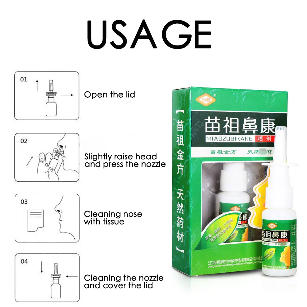 Использование: распылите изделие в носовую полость. Один-два распыления на один раз. 3-4 раза в день. Или использовать его, когда вам нужно.