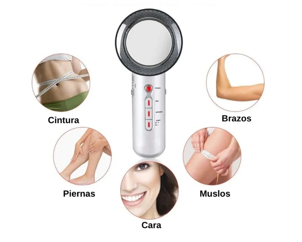 Эффективный ультразвуковой массажер для лица и тела. Ультразвуковой волновой массаж способствует метаболизму для сжигания жира. Инфракрасный светильник работает на коже, стимулирует фибробласт для производства нового коллагена и эластичного волокна, который может повысить эластичность кожи.