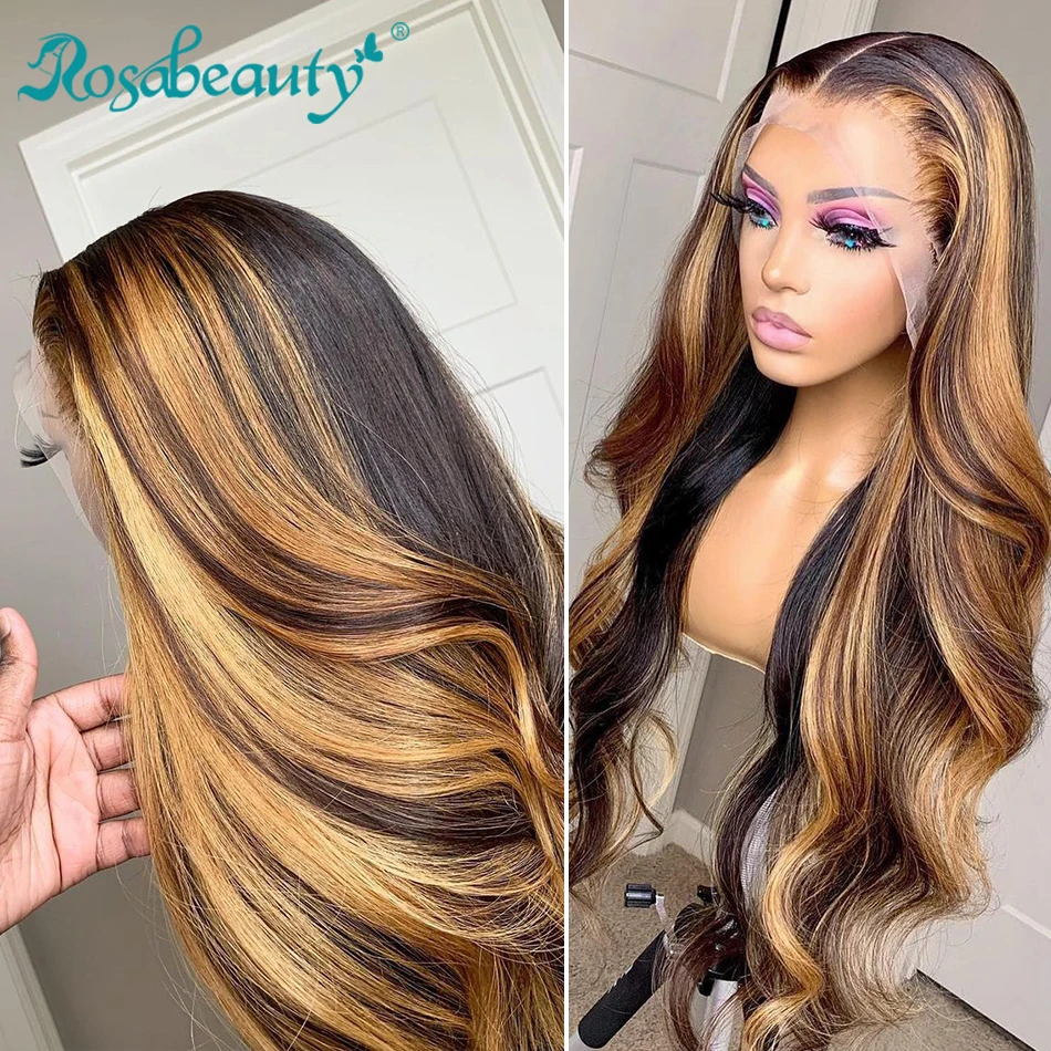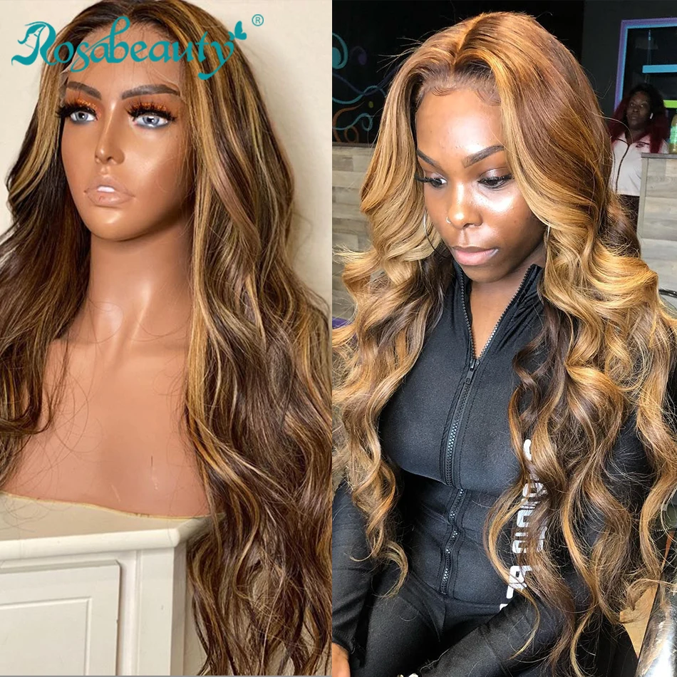 Rosabeauty 4 27 цветной парик Омбре Выделите коричневый парик бразильские человеческие волосы волнистые кружевные передние парики 180 плотность 30 дюймов