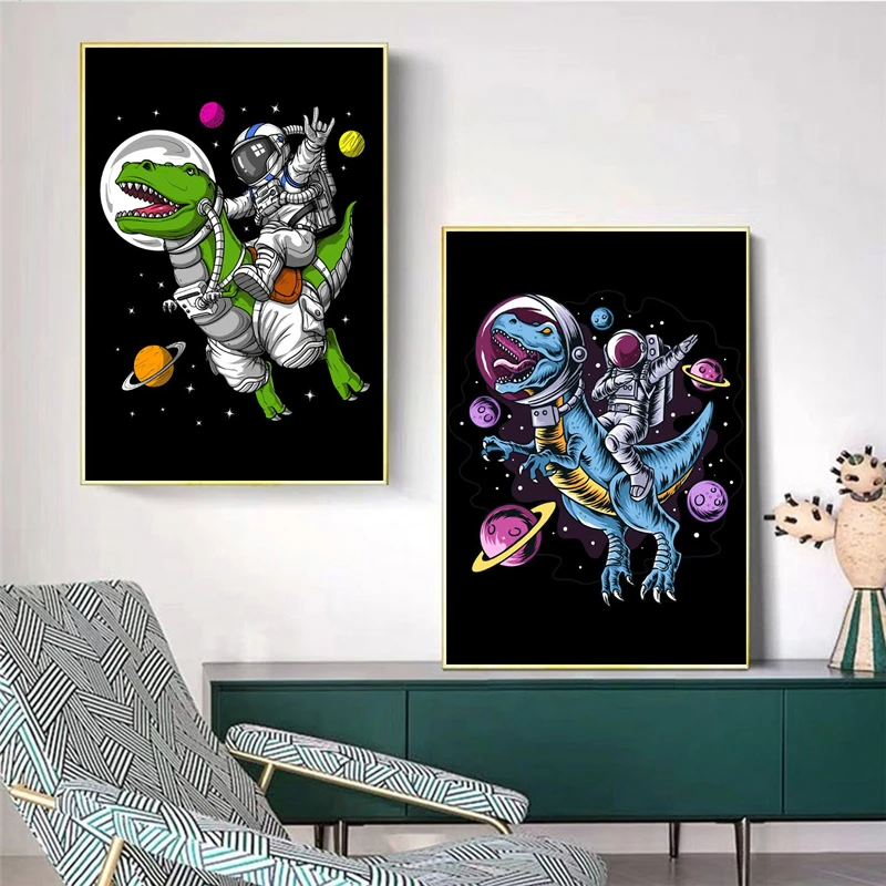 Современная картина в виде динозавра с космическим интерьером, декор для мальчика, спальни, креативная настенная живопись для гостиной, спальни, художественный печатный плакат icon star icon star icon star icon star icon star