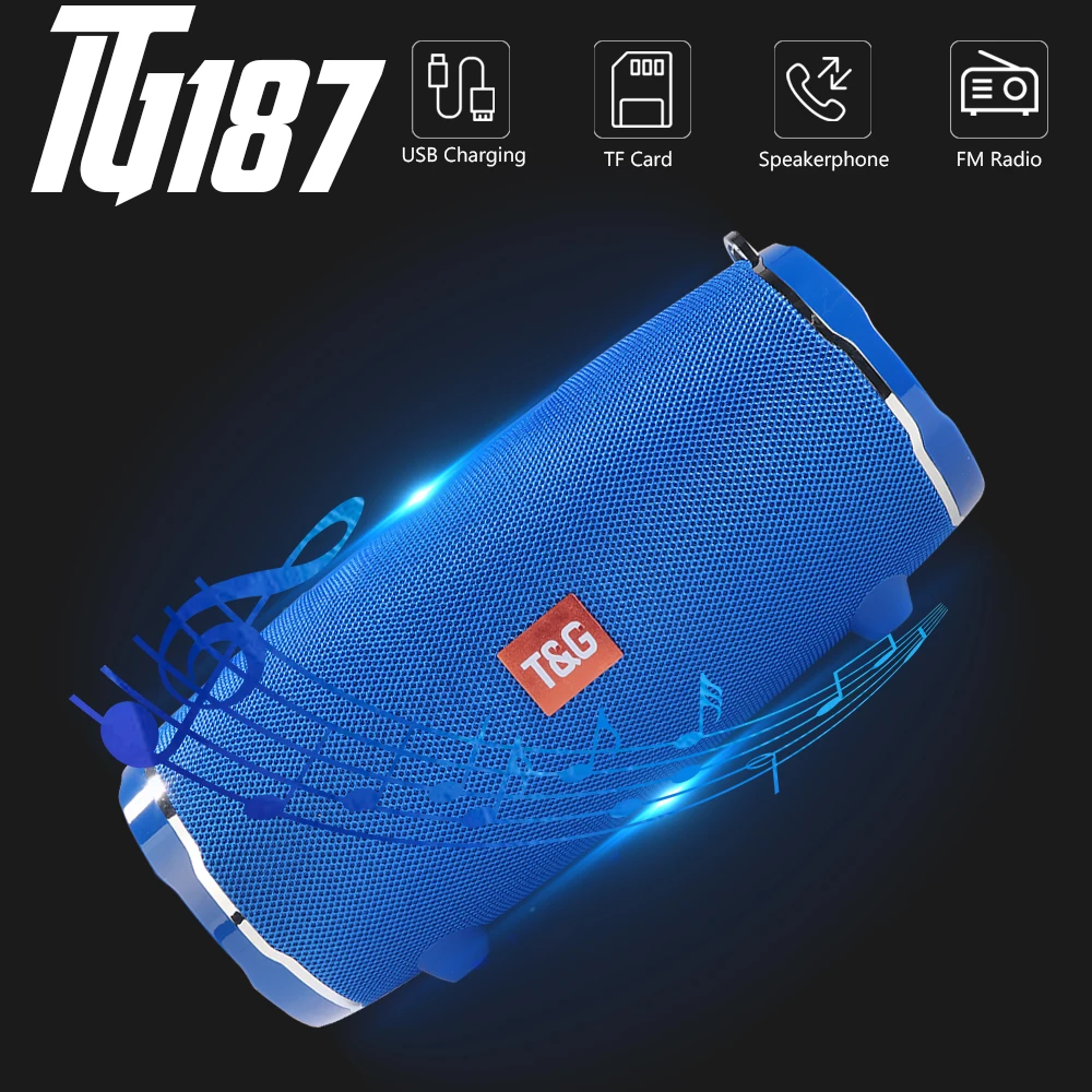 Портативная колонка высокой мощности 3D Stereo Boombox TG187, Bluetooth-совместимая беспроводная уличная колонка с сабвуфером s с AUX TG