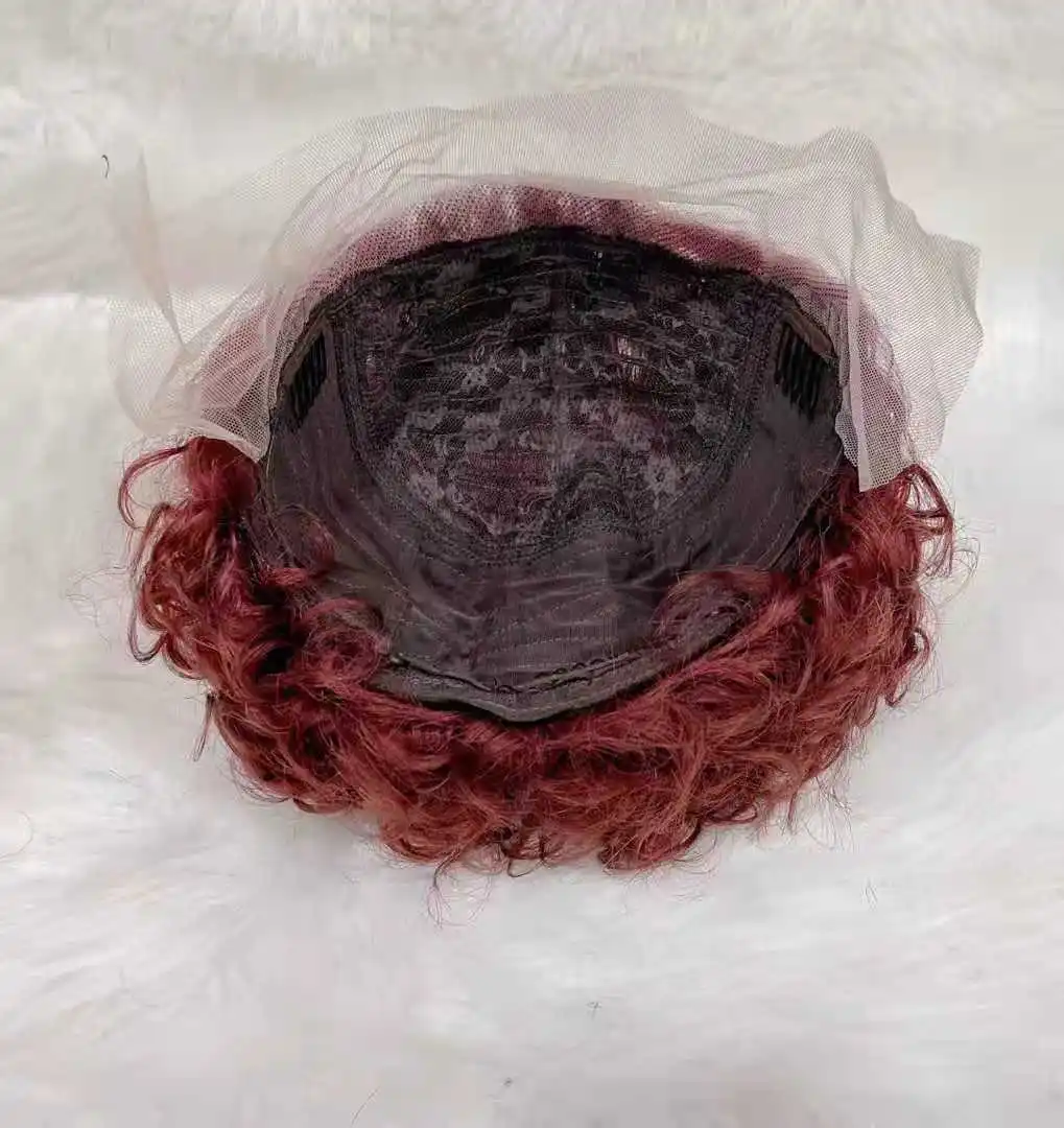 99JBouncy кудрявые короткие боб парик шнурка бордовый парики шнурка для красного Pixie Cut Детские волосы 200 Плотность отбеленные бразильские BOB парики