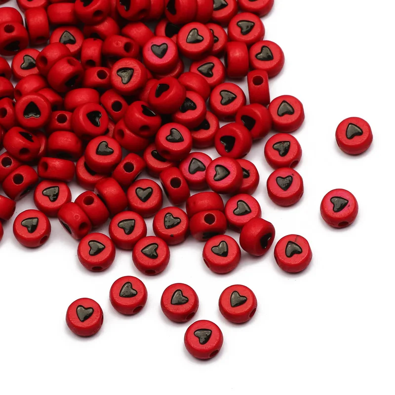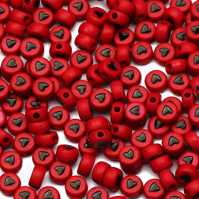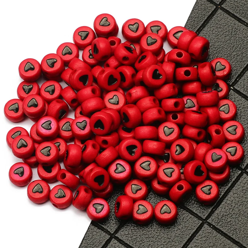 7 мм Красное сердце круглые акриловые бусины плоские свободные бусины для изготовления ювелирных изделий ручной работы Шарм Diy Аксессуары для браслета оптовая продажа
