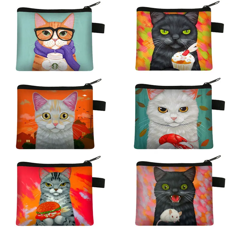 Новые милые кошельки для монет с принтом кошки, мини-кошелек для ме...
