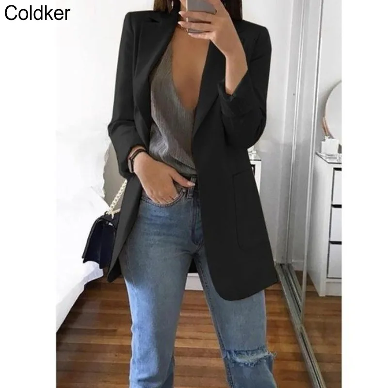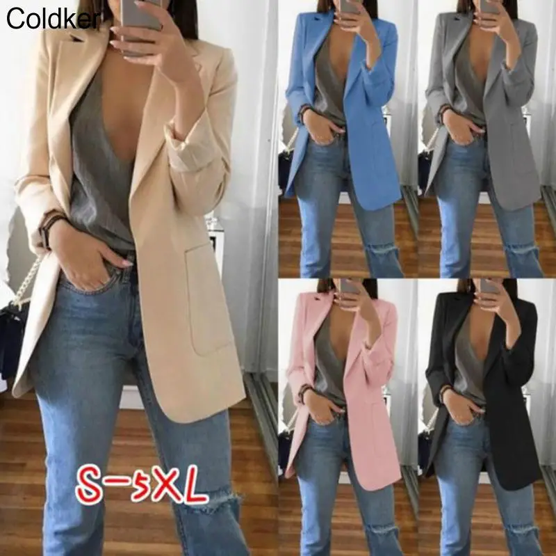 XXXXXL большой размер 2022 Новый женский элегантный тонкий повседневный однотонный деловой Блейзер облегающий длинный Блейзер Куртка женский весенний осенний костюм