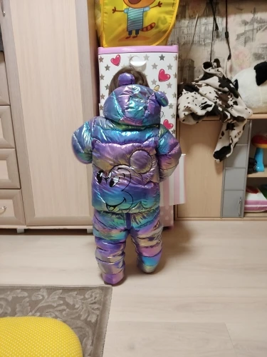 Хороший комбинезон. Продавец отправил товар только после напоминания. Дошло быстро. Комбинезоном довольна. На рост 104 заказала 5т,размер пришит 120 великоваты. Хватит еще и на весну. Гуляли в 0 ° на обычные колготки, пришли домой и ребенок теплый. Расцветка необычная, воспитателям понравились. Единственный минус, не налезают на дутики. Прошли с честью испытания, падание на колени по афальту. Цвет сохранили, не слезли. Но стирать пока боюсь. Грязь с них хорошо стирается салфетками.