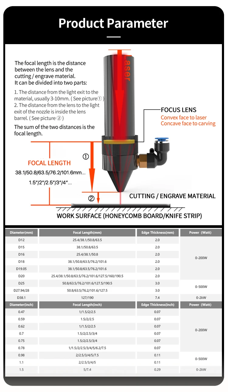 CO2 лазерный фокусный объектив PVD 0-100 Вт диам.12 18 19 20 мм FL38.1 50,8 63,5 76,2 мм для Co2 лазерного гравировального станка