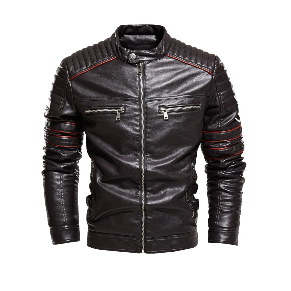 Зимняя кожаная куртка для мужчин Slim Fit мотоциклетная куртка ветр...