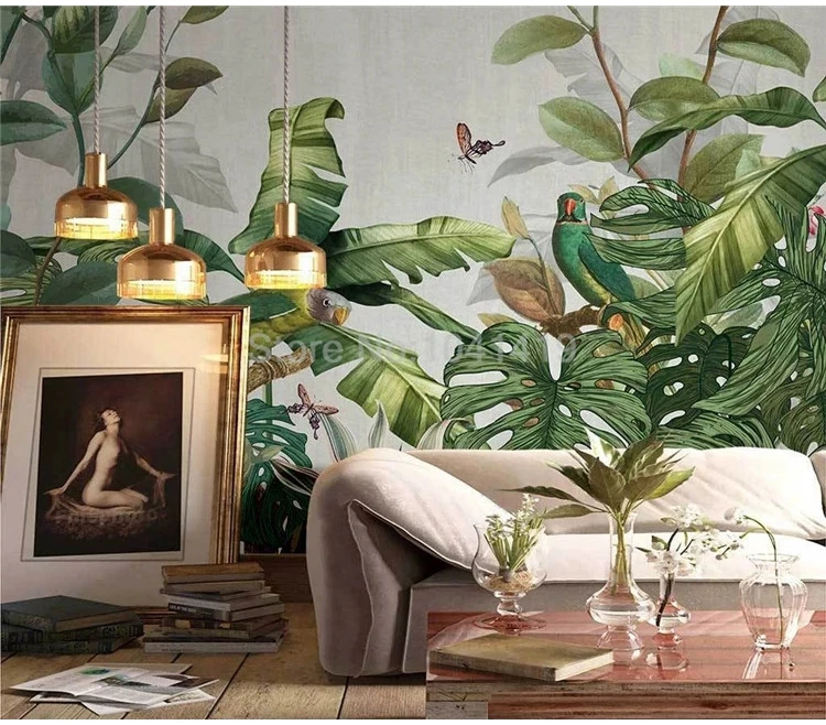 Фотообои на заказ скандинавские Раскрашенные вручную тропические леса Юго-Восточная Азия джунгли растения комнатные растения фон обои