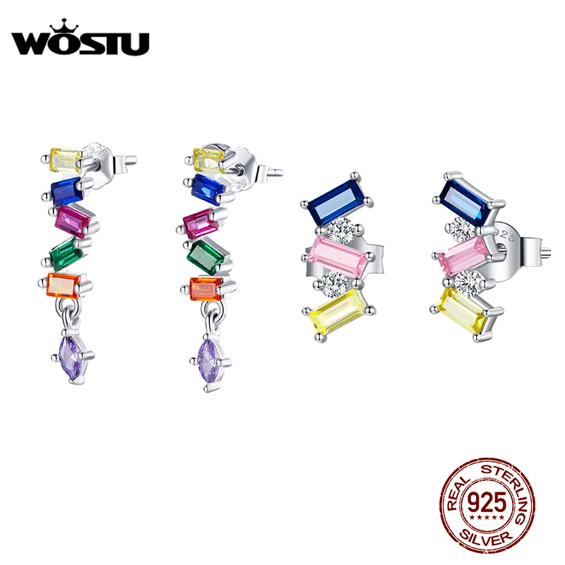WOSTU Серебро 925 геометрические серьги длинные биение красочные железные серьги Радуга для женщин Роскошные серебряные ювелирные изделия из стерлингового серебра CQE1185