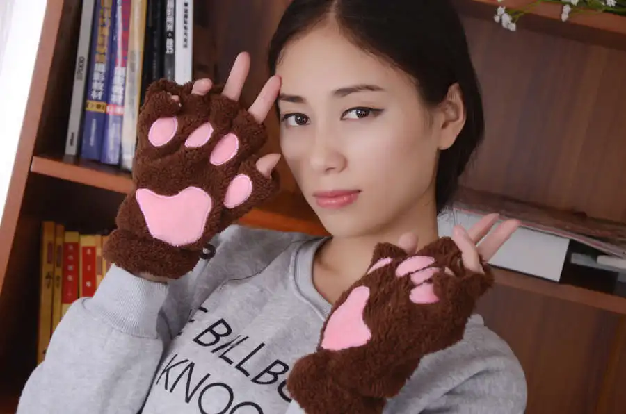 Перчатки женские, с кошачьими когтями, плюшевые, без пальцев