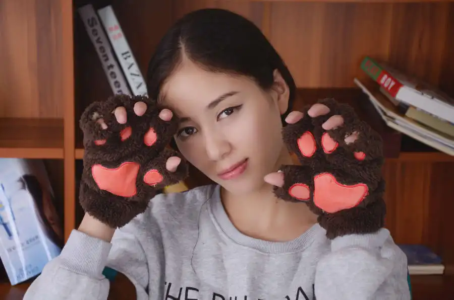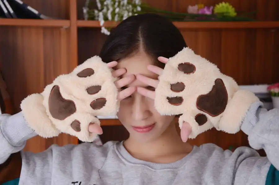 Product NameWinter Faux Fur Cute Women Bear Plush Cat Paw Claw Gloves