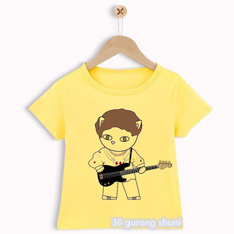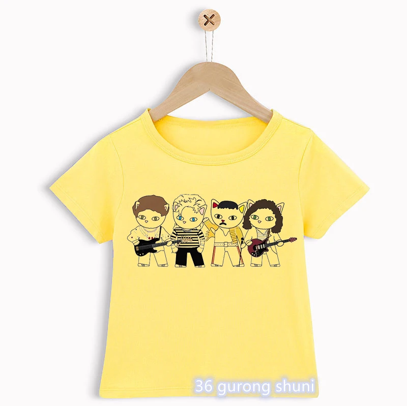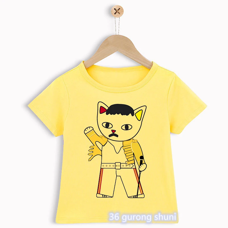 Забавная футболка Freddie Mercury для девочек и мальчиков, футболка с Королевской группой, детские футболки с коротким рукавом, желтая летняя брендовая одежда в стиле рок, топы