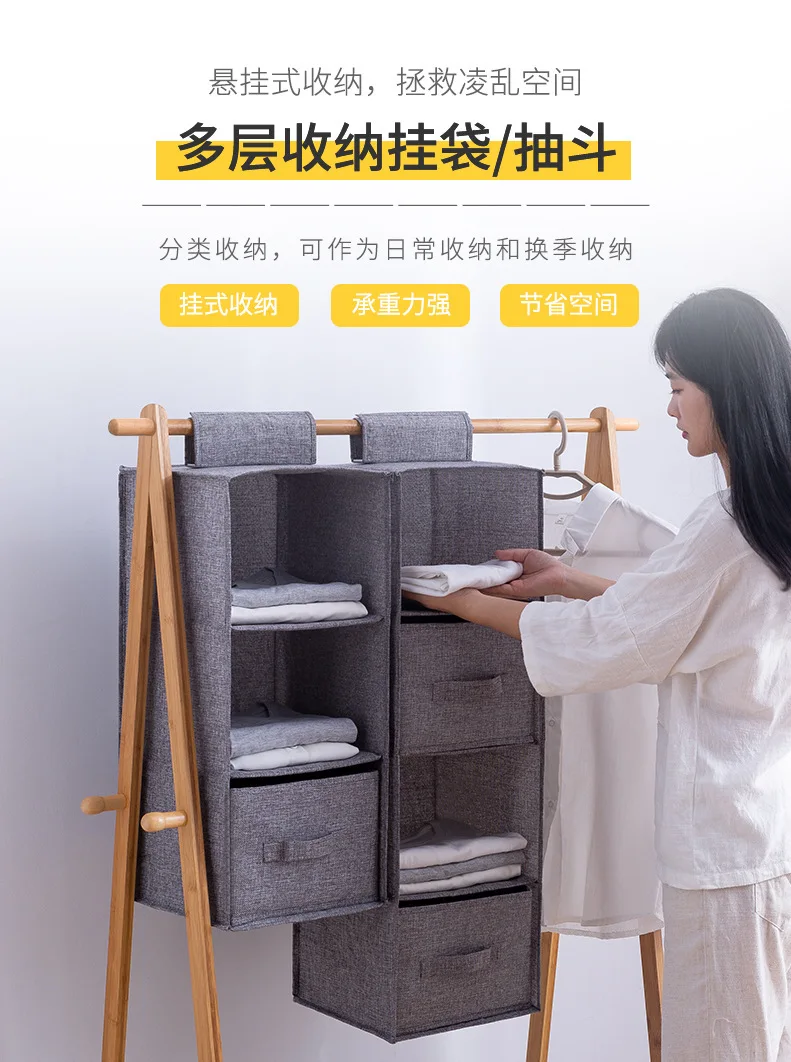 Шкаф висячая сумка для хранения с ящиком носки вешалки для одежды держатель портативный хлопковый льняной подвесной шкаф, органайзер для хранения коробка