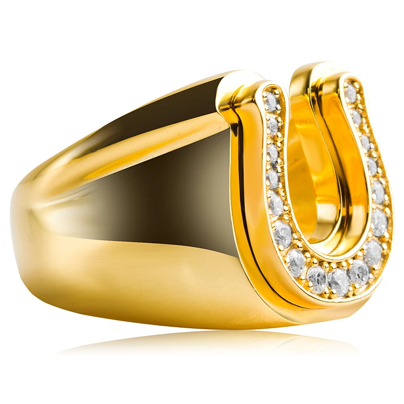Кольцо мужское с инкрустацией из гладкой подковы