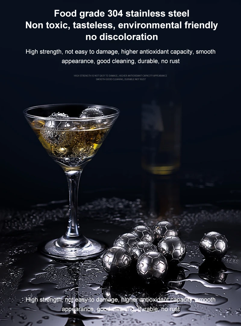 Кубики льда из нержавеющей стали многоразовые быстрозамороженные футбольные хоккейные виски охладители пива вина охладители льда коробка охлаждения металла камень