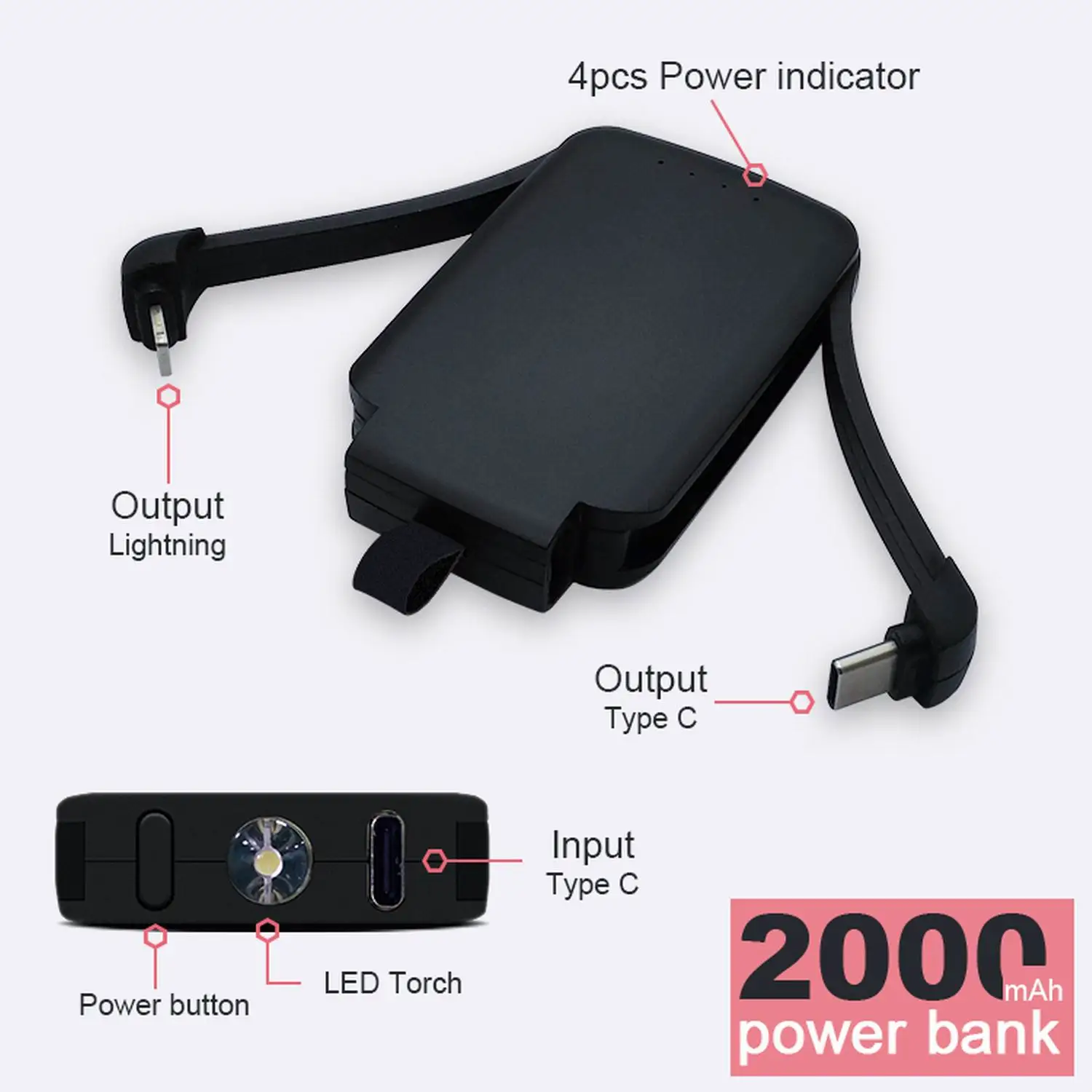 Компактный портативный Встроенный кабель, 2000 мАч, аварийный внешн...