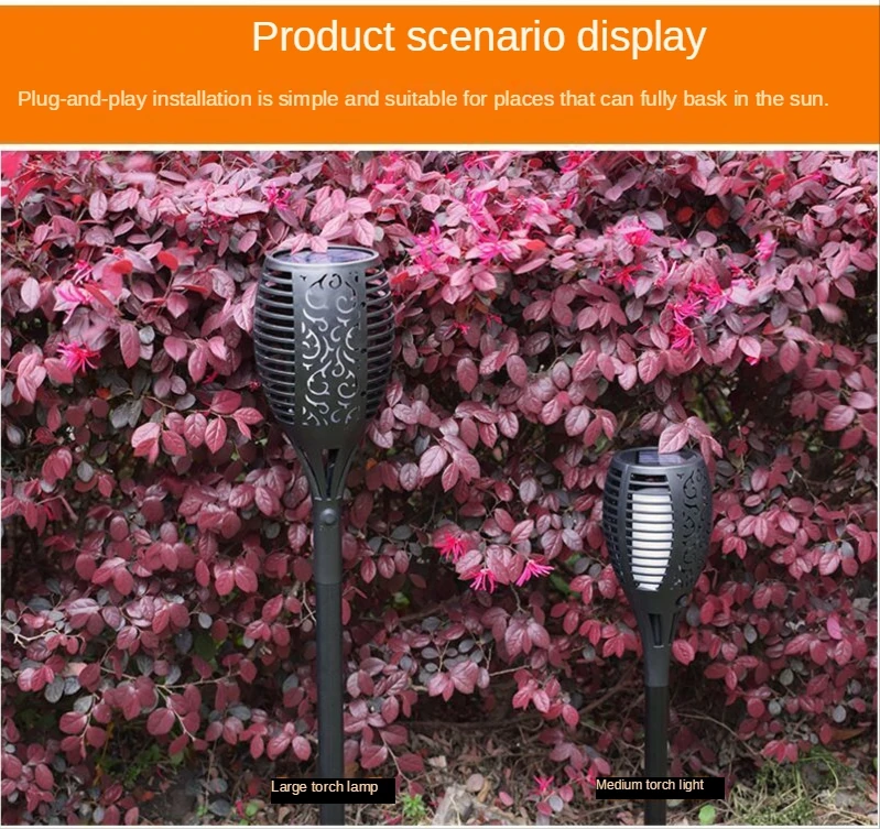 Светодиодный пламенный фонарь на солнечной батарее, водонепроницаемый светильник IP65, уличное украшение для сада, виллы, двора, светильник