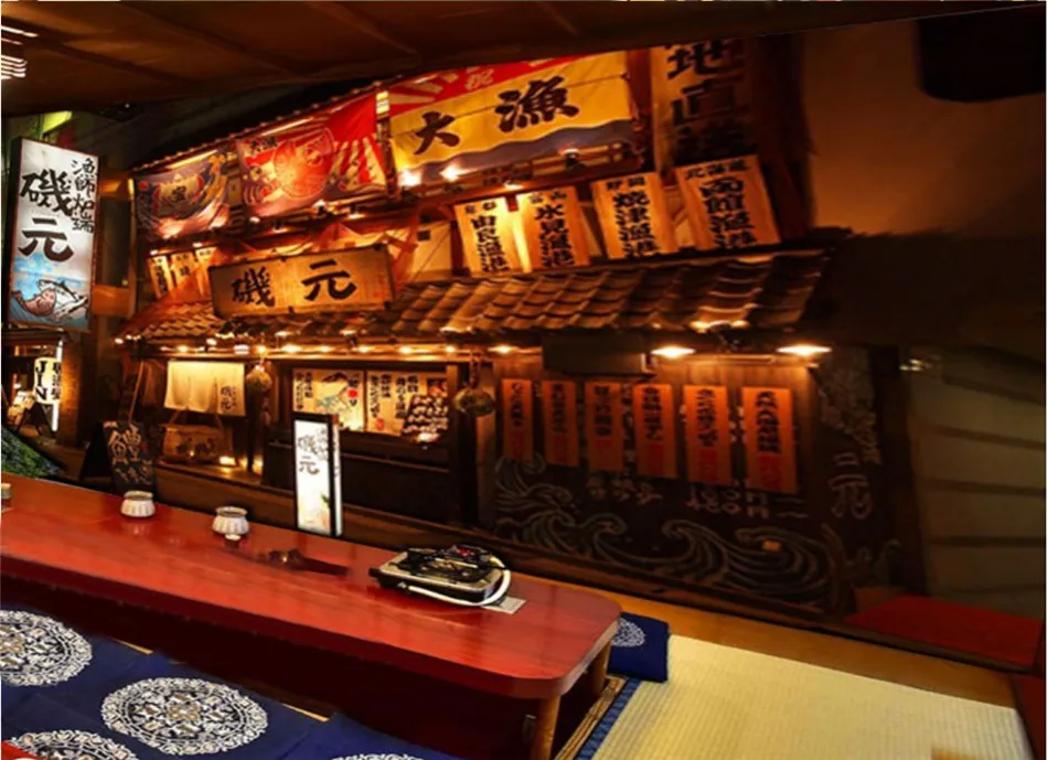 Настенная 3D фотобумага в стиле ретро с изображением японской изакаи для японской кухни, суши, ресторана, промышленный декор, Настенная 3D Бумага