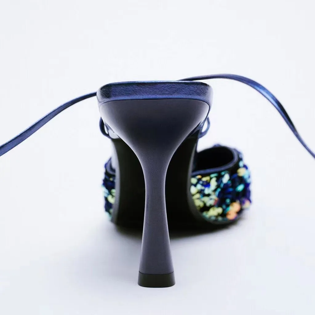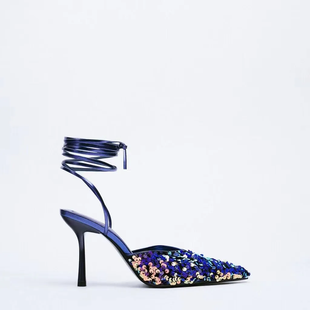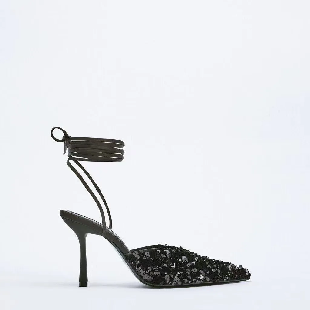 Босоножки ZA женские на высоком каблуке, вечерние заостренный носок...