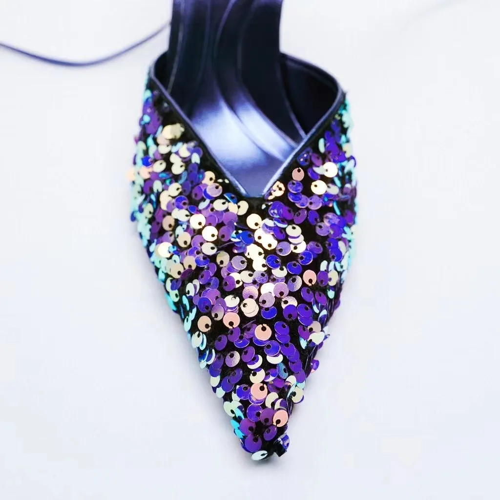 Женские босоножки на высоком каблуке, с острым носком, без застежки...