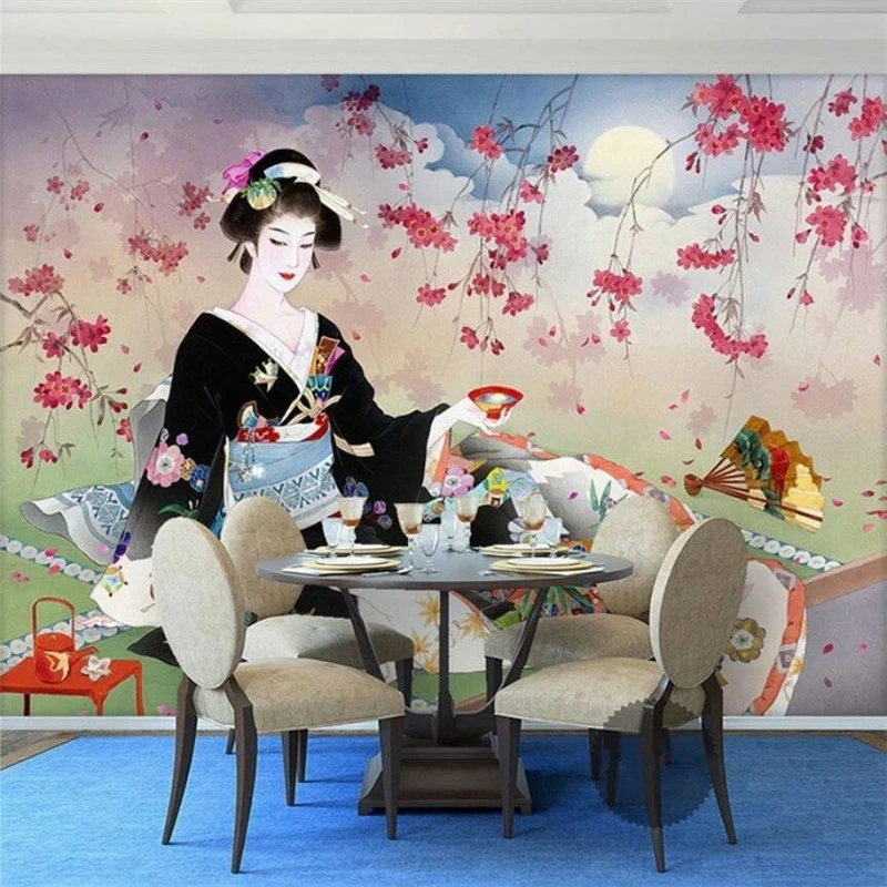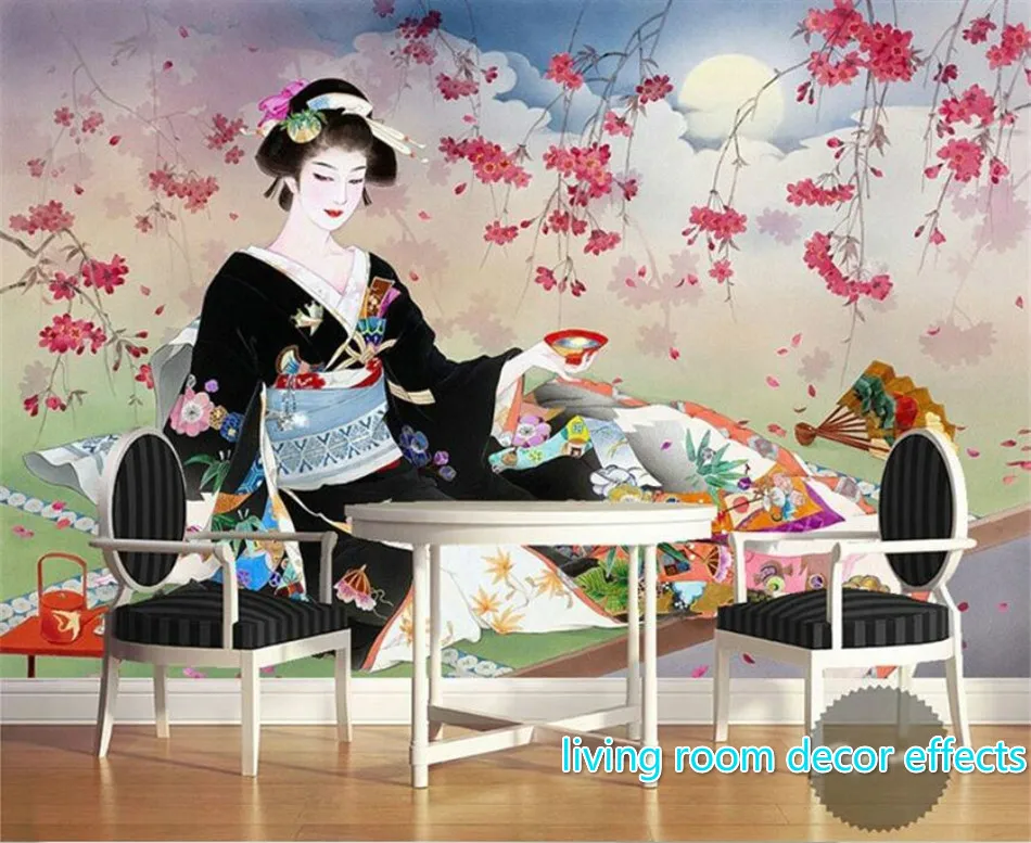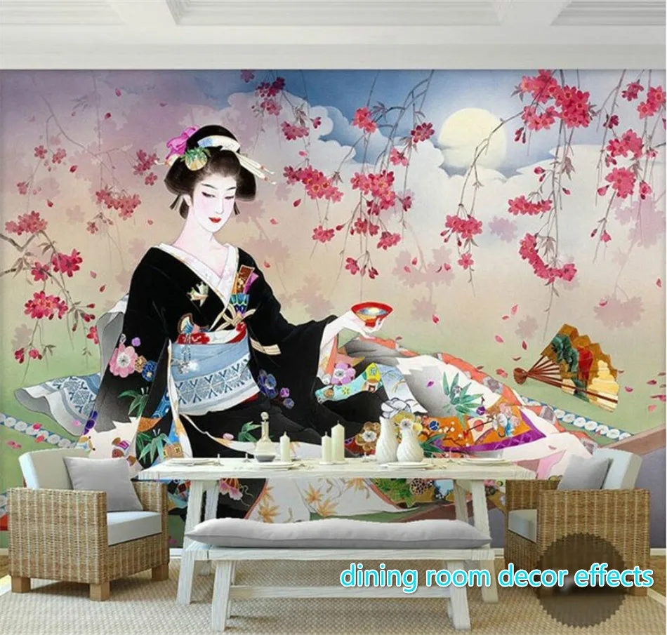 Японский укиё-э певица Леди вишневый цвет настенная бумага 3D суши Ресторан изакая настенная Гостиная Спальня Декор настенная бумага 3D