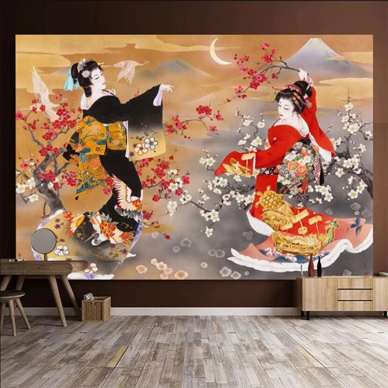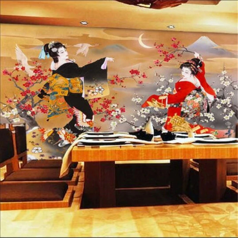 Настенная 3D Бумага в японском стиле Ukiyo-e Geisha Sakura 3D для суши ресторана Izakaya отеля татами Декор настенная 3D Бумага