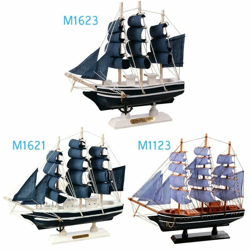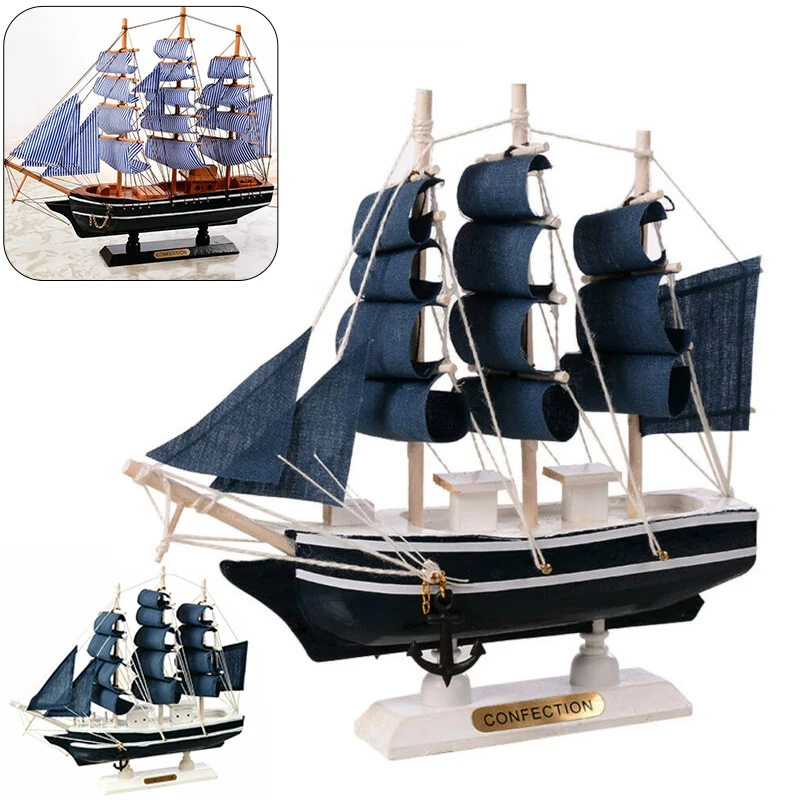 Парусная лодка из Карибского дерева, детские игрушки, модель парусной лодки в средиземноморском стиле, украшение для дома, подарок ручной работы, резная Морская Лодка