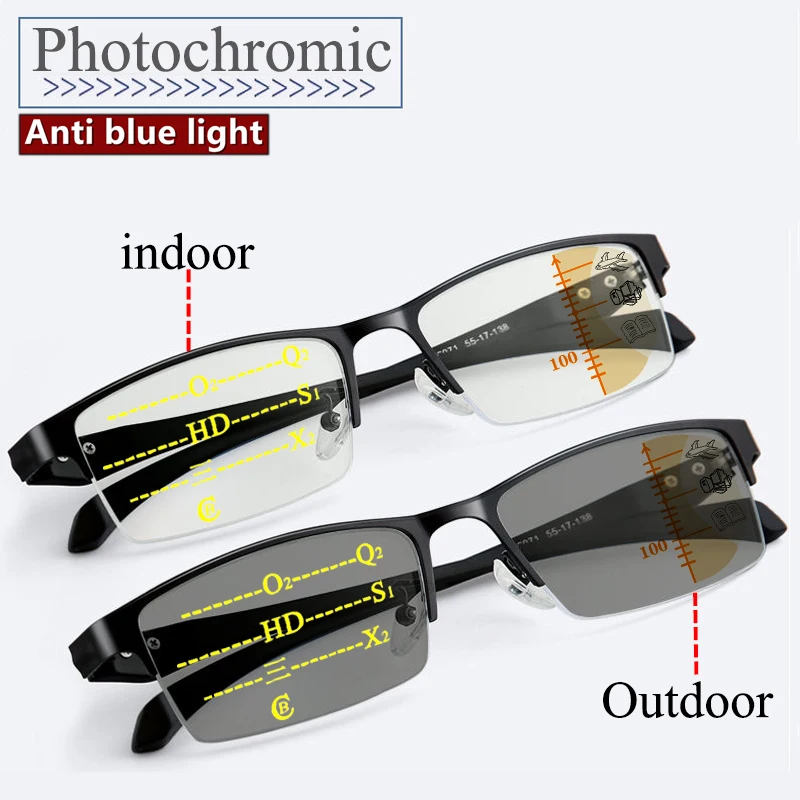 Уличные фотохромные Мультифокальные очки для чтения мужские с защитой от синего светильник прогрессивные солнцезащитные очки для дальнозоркости 1,5