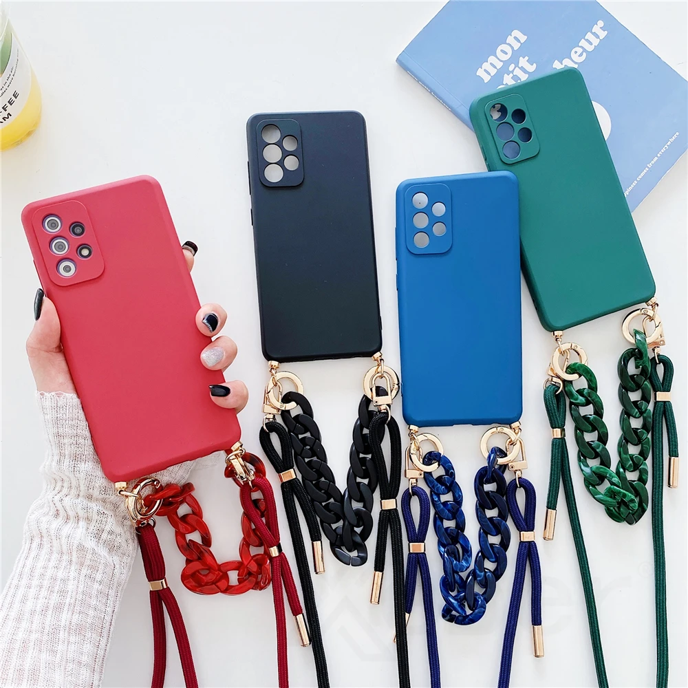 Мраморный цепи ремень для переноски ожерелье из жидкого силикона чехол для Samsung A52 A72 A42 A32 A12 A82 A22 A51 A71 A21 A31 A11 A20 A30 A50