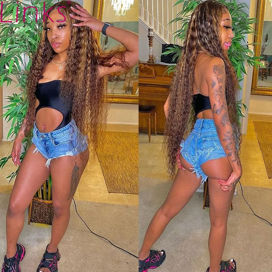 Женский передний парик из натуральных волос, с глубокой волной и эффектом омбре