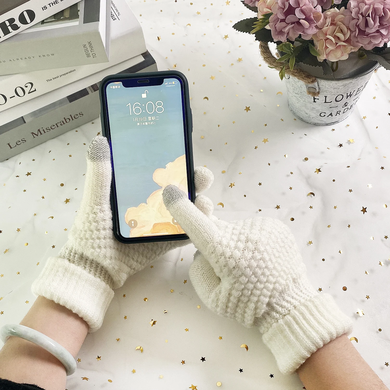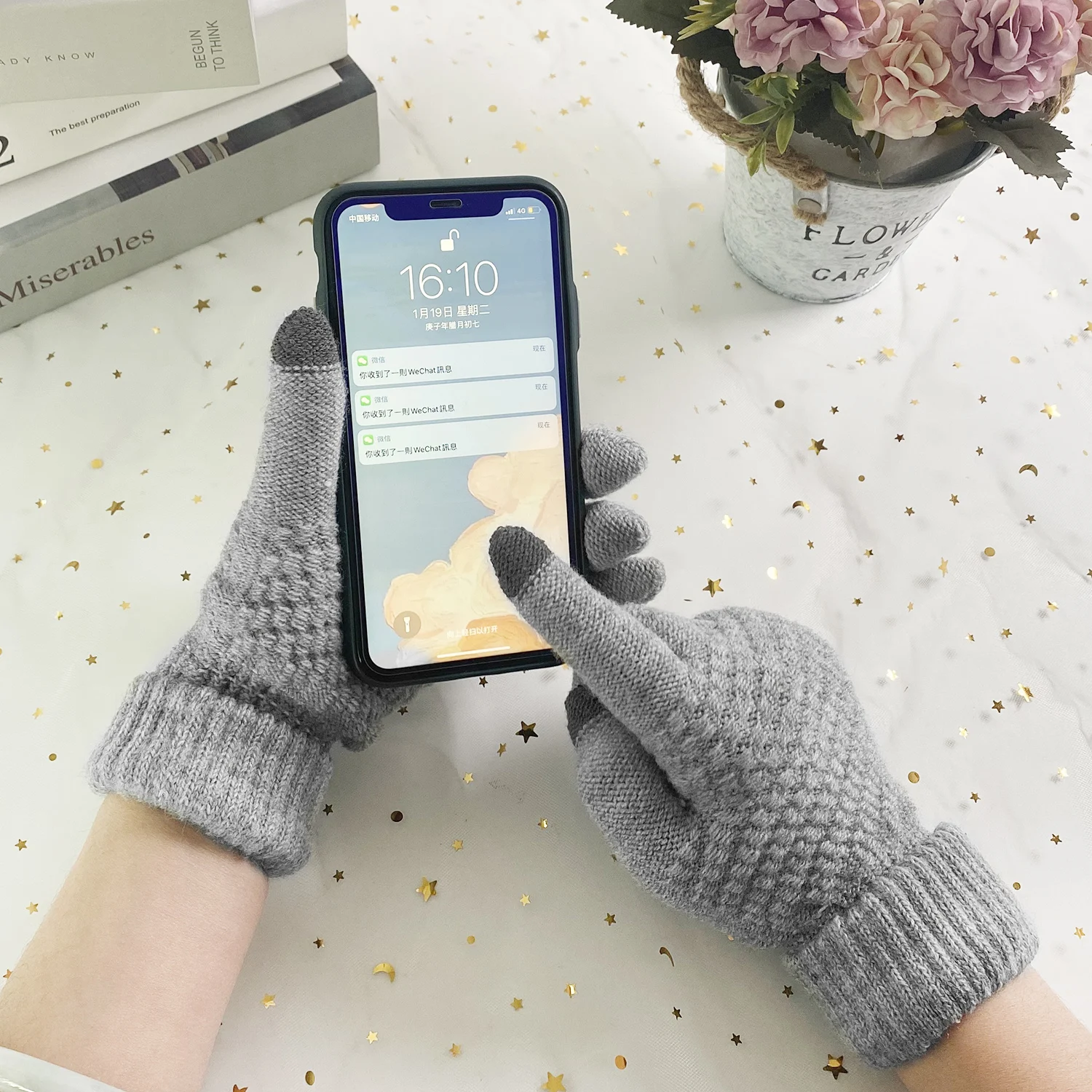 Перчатки женские зимние, кашемировые, шерстяные, вязаные, белые, серые, черные, теплые, плотные, для планшета мобильный телефон
