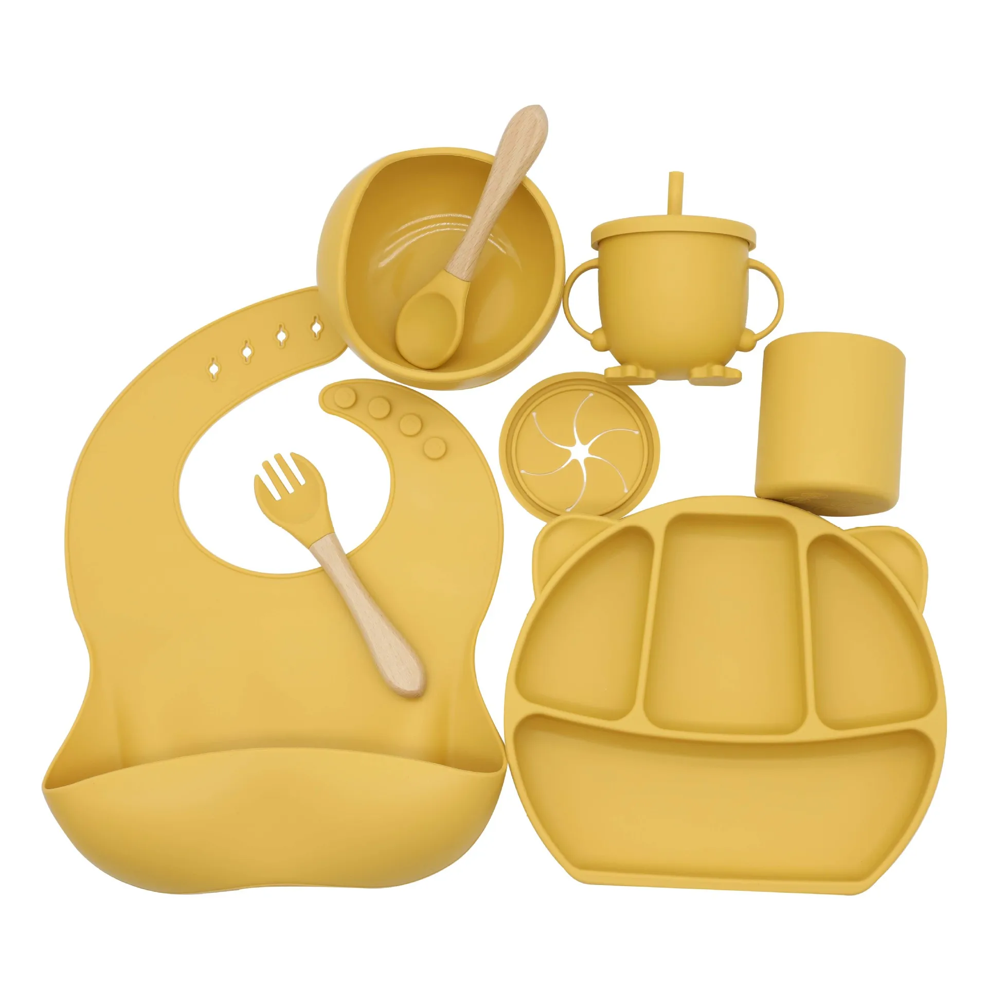Детская силиконовая посуда, пищевая добавка для детей, миска, ложка, вилка, стандартная чашка для воды, нагрудник, обеденная тарелка для младенцев