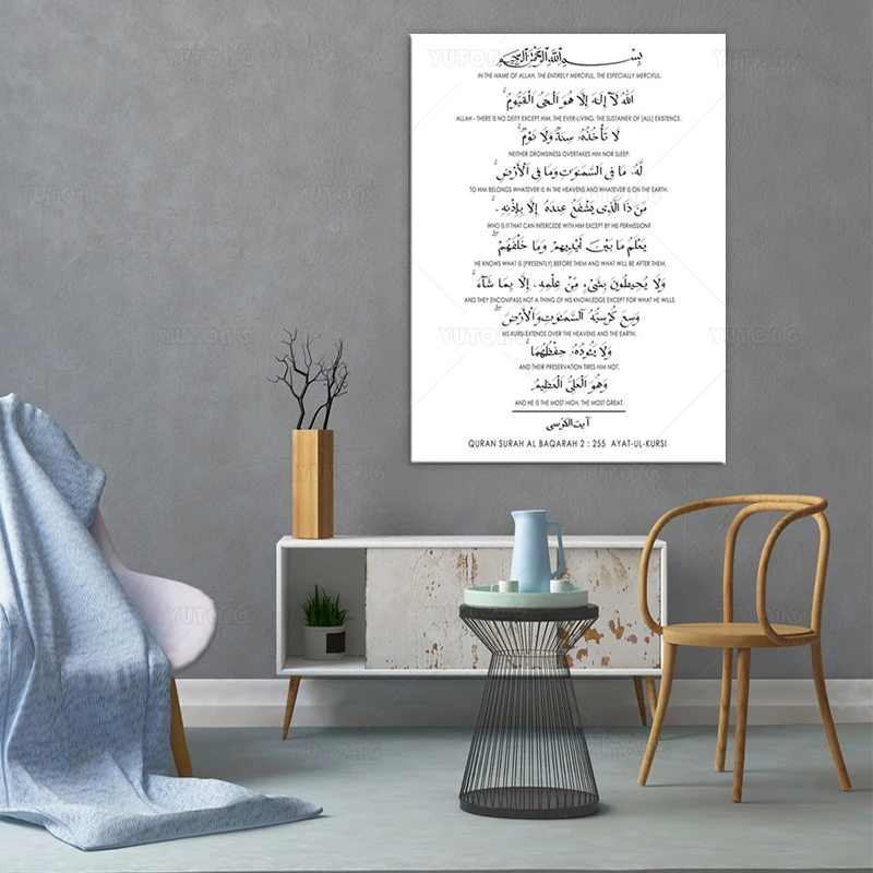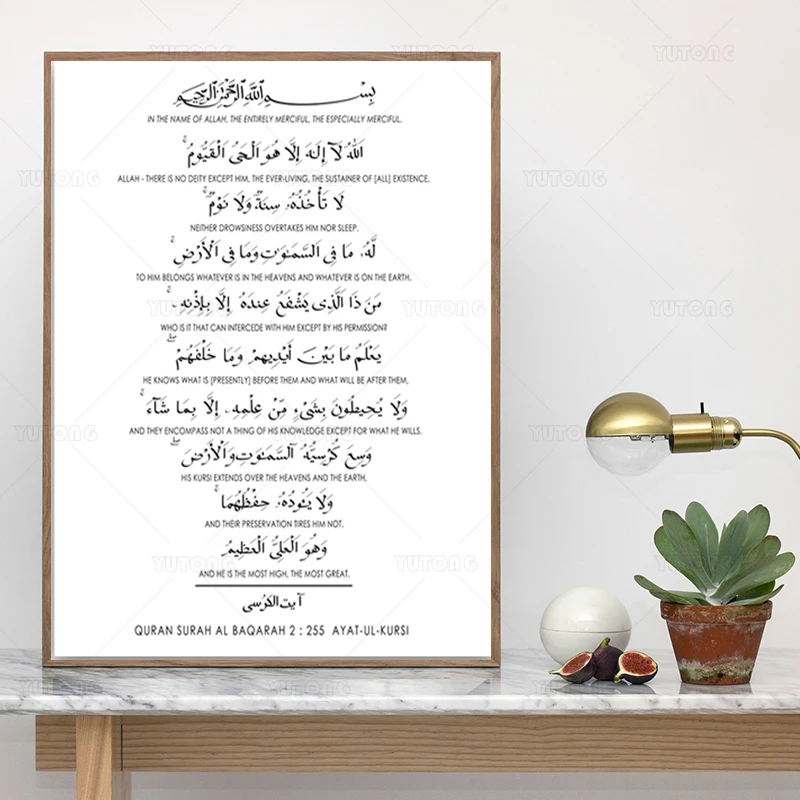 Плакат из Корана, суры, аятуля КУРСИ, каллиграфия, художественная стена с цитатой холст, минималистские арабские принты, картина, Аят, аль-КУРСИ, исламский мусульманский плакат