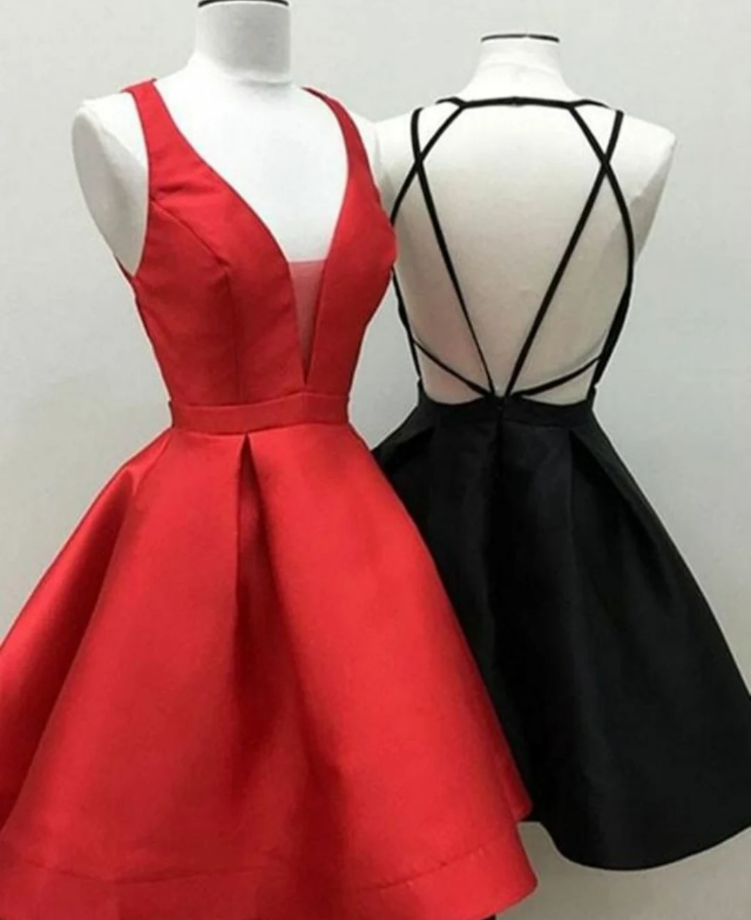 Короткое сатиновое черное платье с v-образным вырезом и карманами для выпускного вечера, красное платье длиной до колена с перекрещивающимся верхом на спине, Abendkleid Robes de Soirée для женщин