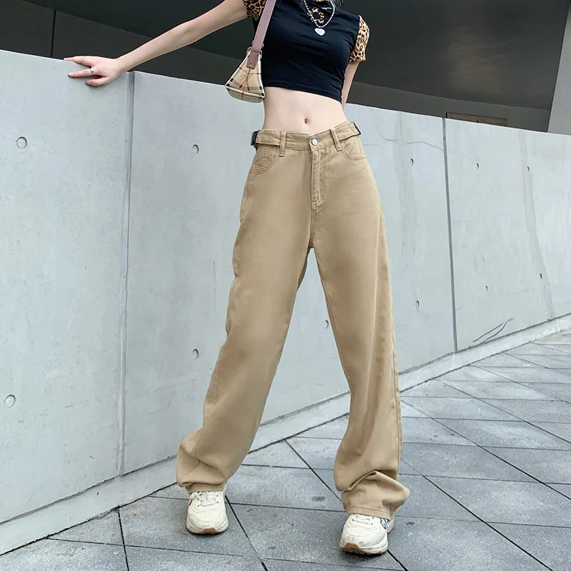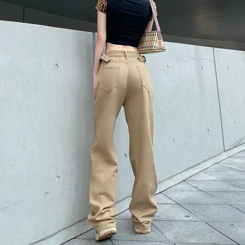 Женские прямые джинсы Y2K с высокой талией, джинсы цвета хаки в ули...