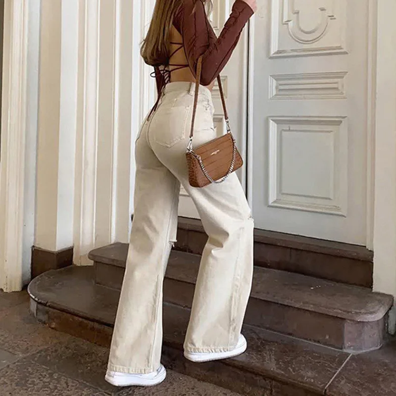 Женские джинсы с высокой талией Weekeep, винтажные повседневные Пря...