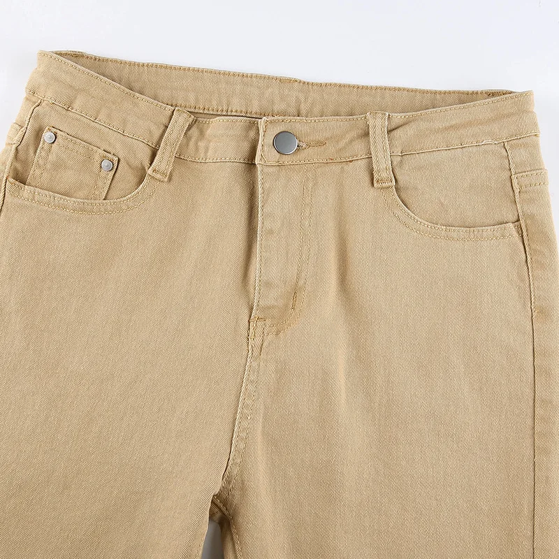 Повседневные женские джинсы цвета хаки Y2K, хлопковые однотонные прямые джинсовые брюки с высокой талией, модные длинные брюки-клеш цвета хаки с карманами для женщин