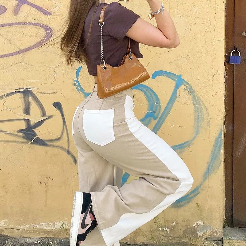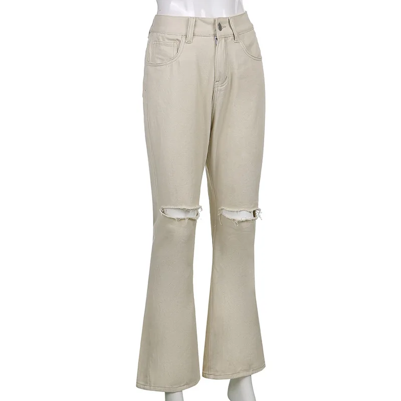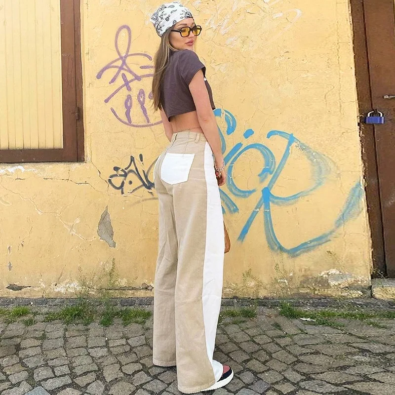 StyleStraight Pants,Flare Pants,Solid Jeans,Patchwork Jeans