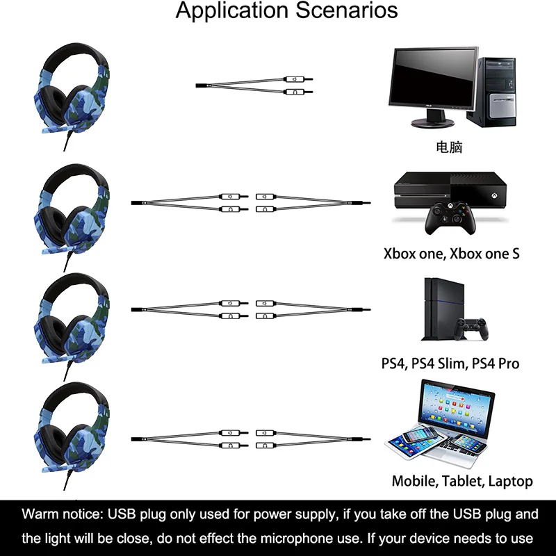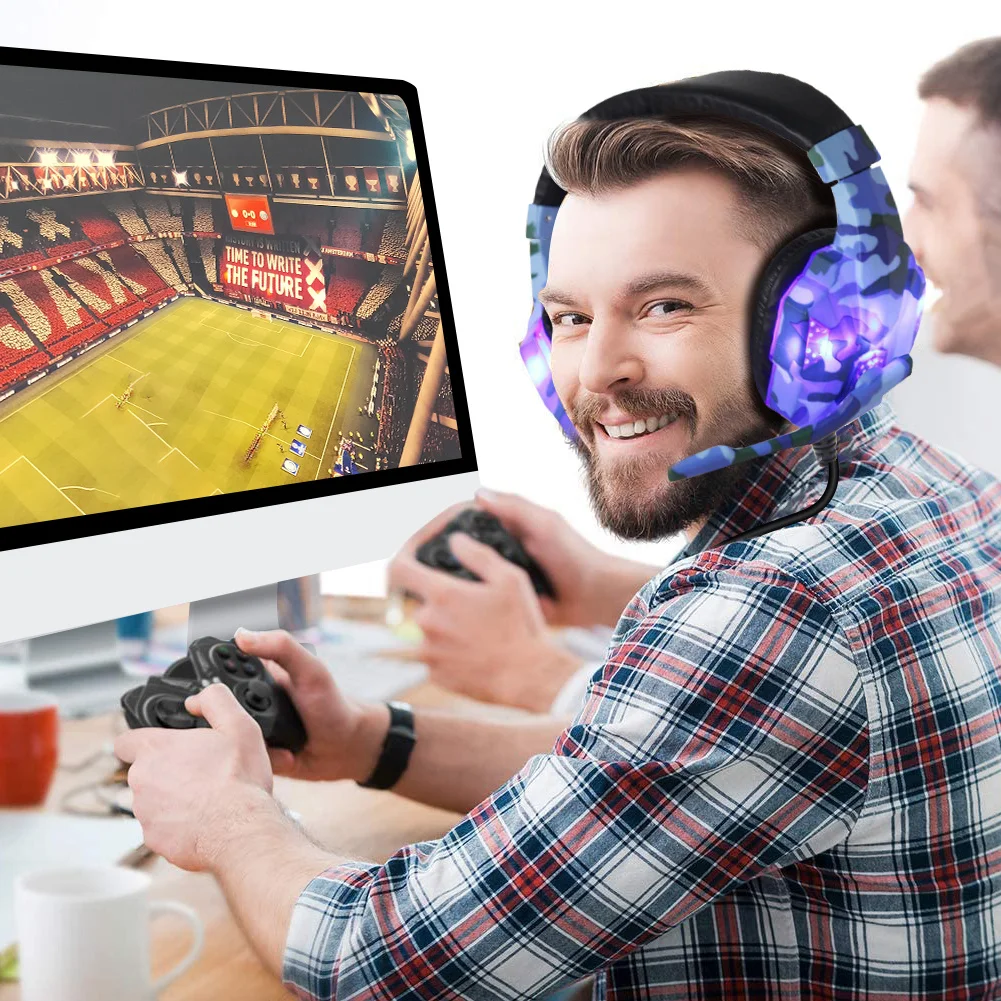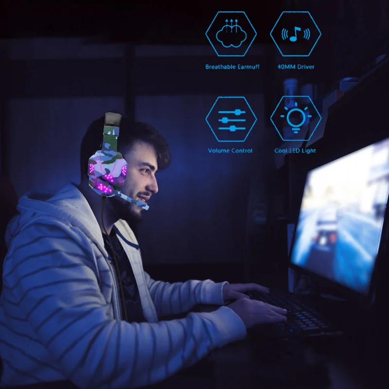 Камуфляжные Игровые наушники с микрофоном для PubgFifa светодиодный светильник Проводная гарнитура для ПК ноутбука PS4 Xbox