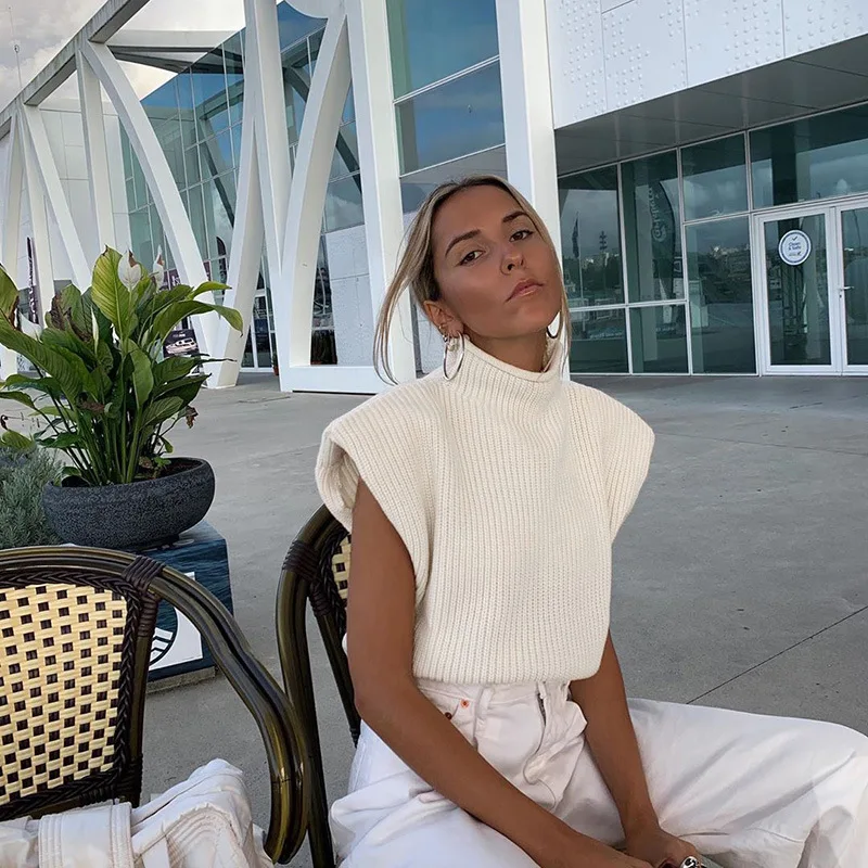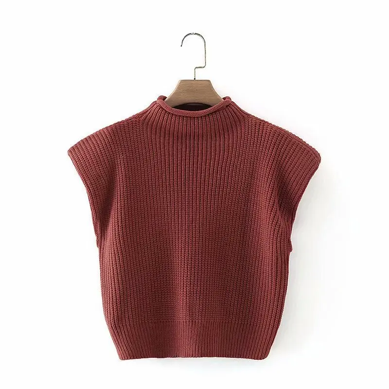 Женский вязаный свитер-водолазка без рукавов, с наплечниками