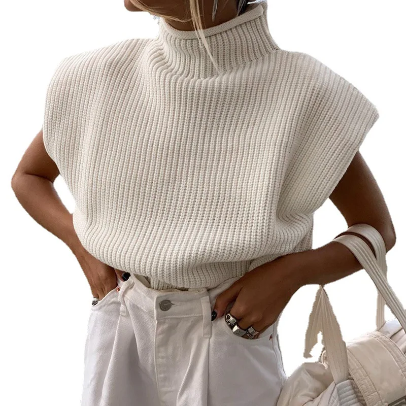 Rollkragen пуловер без рукавов Frauen 2021 Mit Schulter Pads Gestrickte пуловер Herbst зимний джемпер повседневные топы Mode
