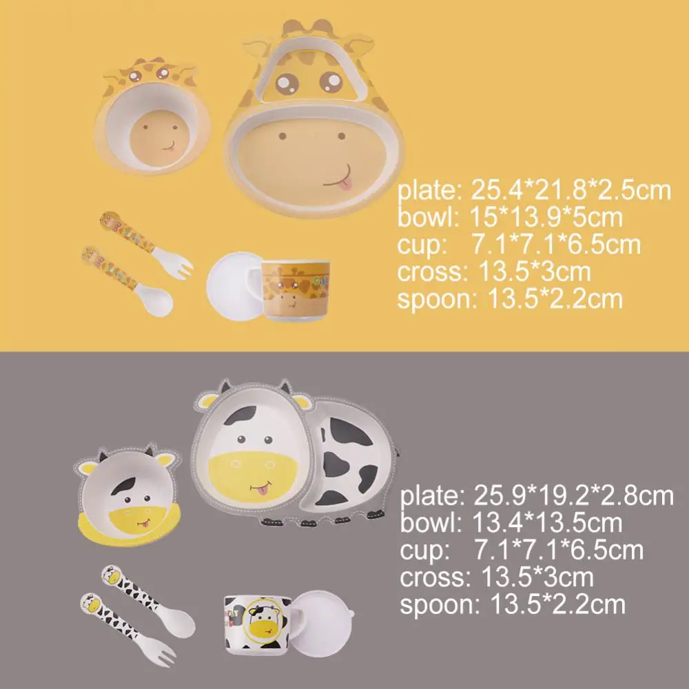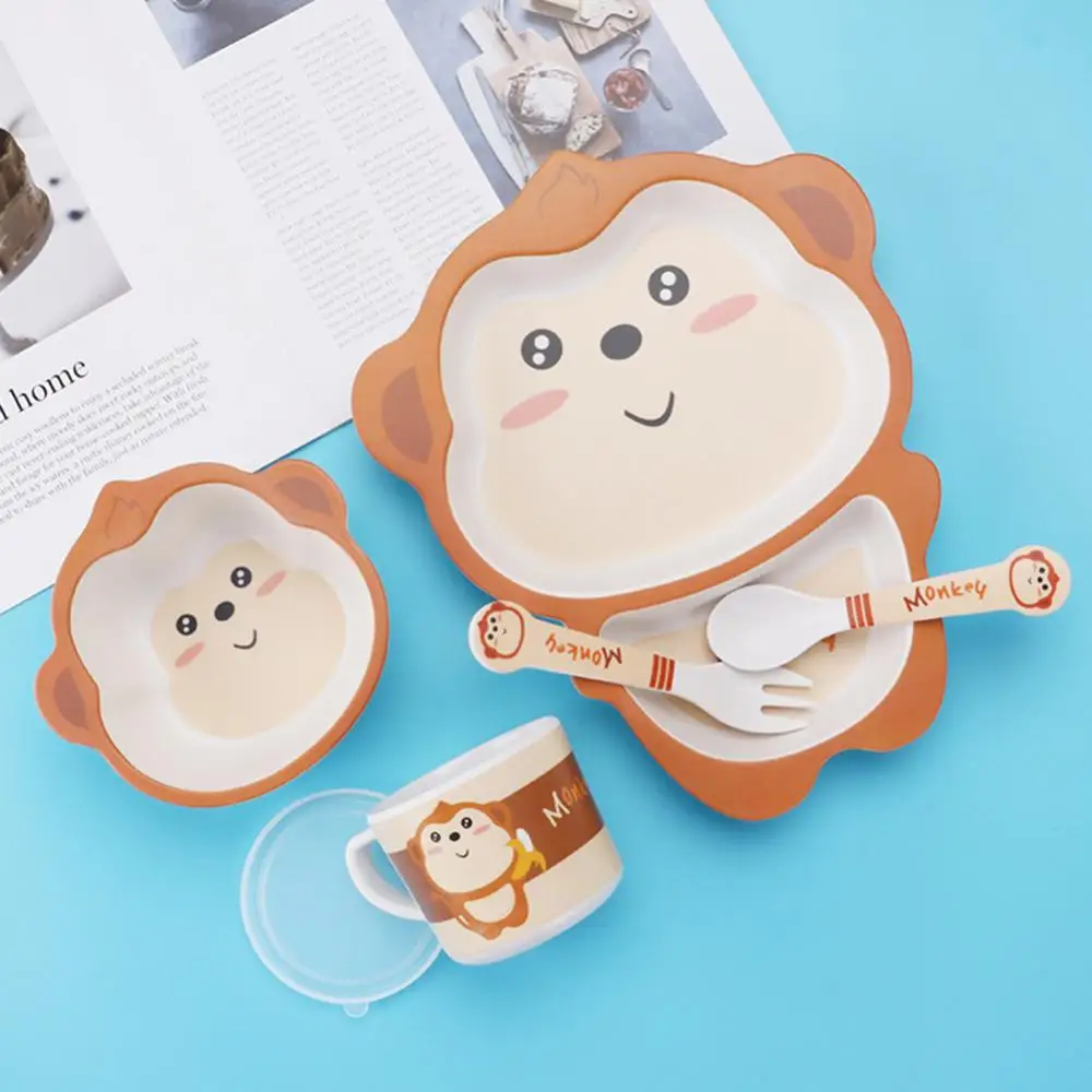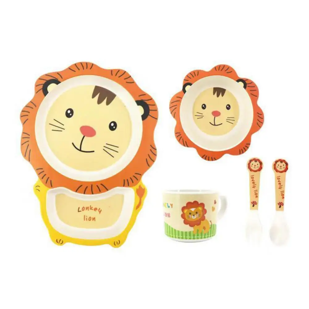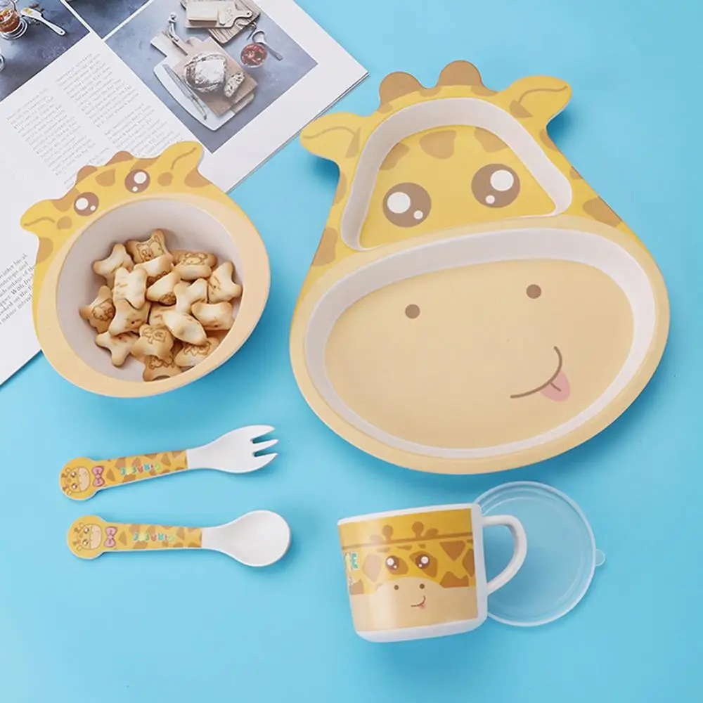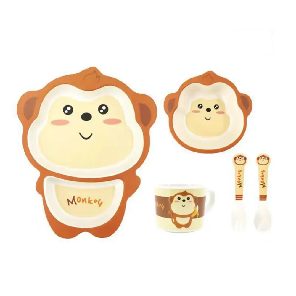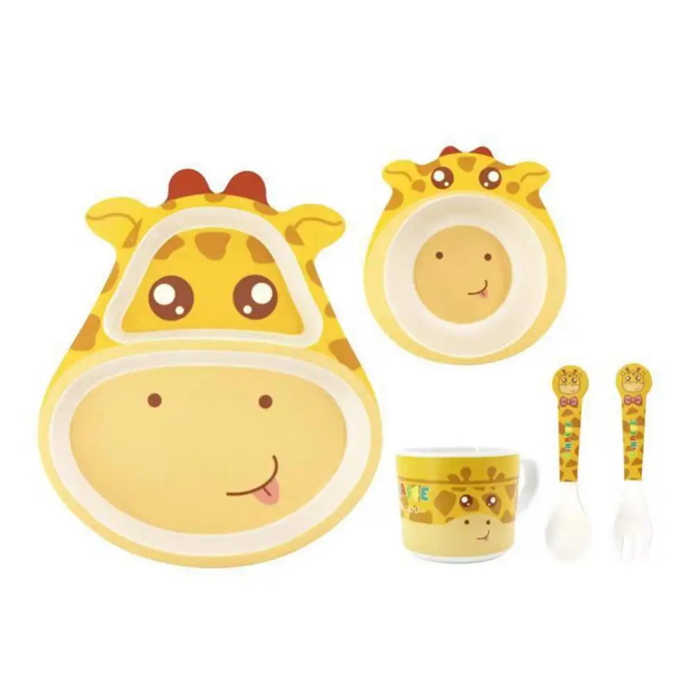 5 шт./компл. Животное зоопарк детская тарелка лук чашки вилки столовая посуда Кормление набор 100% бамбуковое волокно детская посуда набор