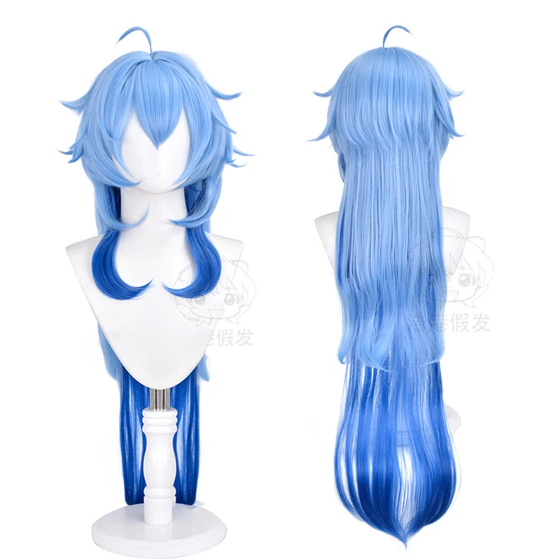 Парики для косплея Genshin Impact Ganyu, парик для косплея Gan Yu, градиентные синие длинные термостойкие синтетические волосы, парики + парик