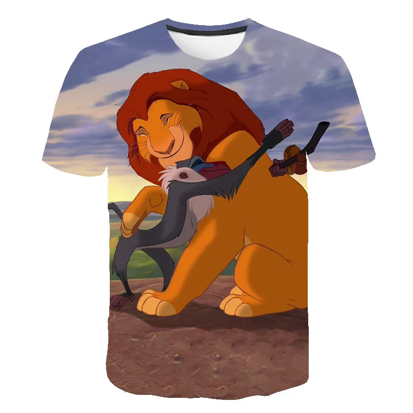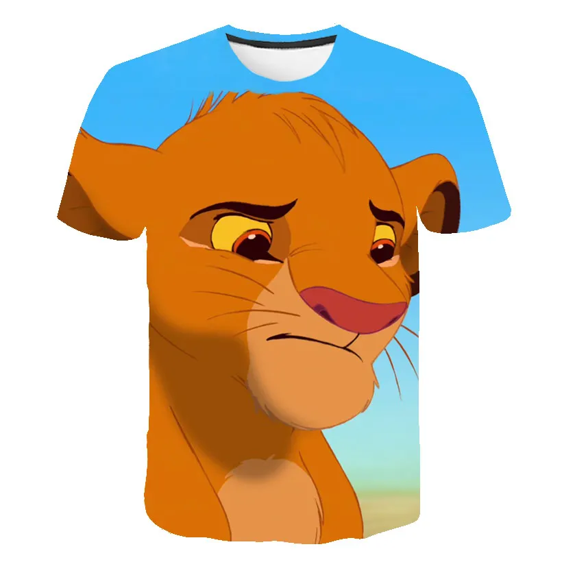 Детская одежда, футболка с львом и симбой, лето 2021, детская одежда, дышащая крутая модная мультяшная 3d-футболка с коротким рукавом для мальчиков и девочек